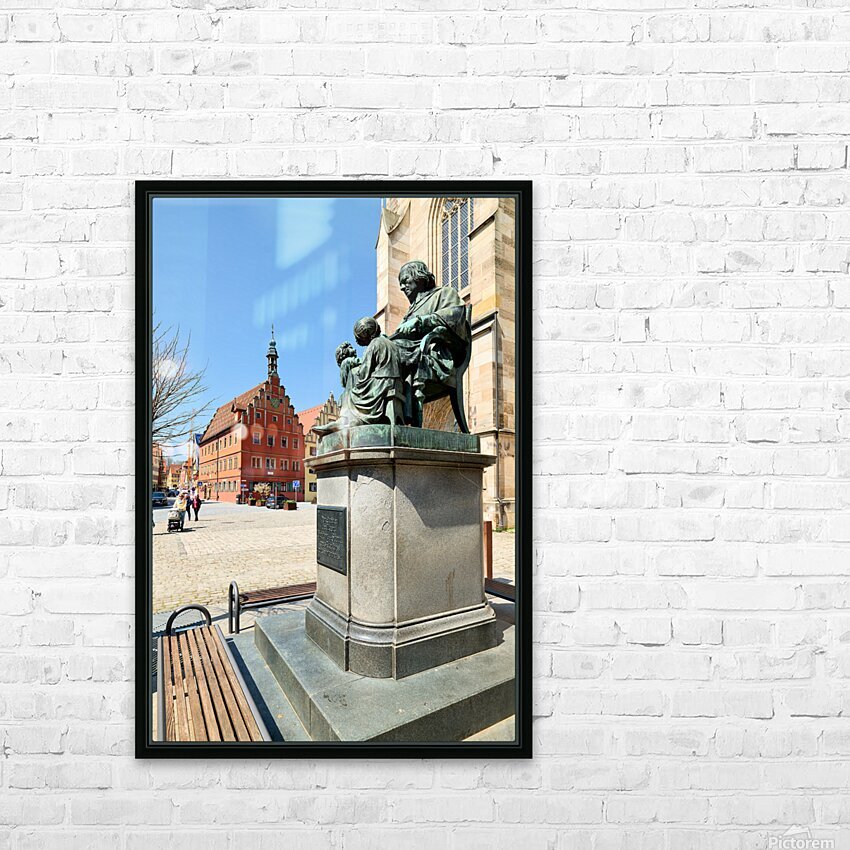 Visitors explore Dinkelsbuhl old town and historical statue Picture Frame Printing