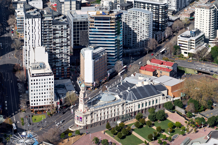 VIEW OF AUCKLAND CITY AND AOTEA SQUARE FROM ABOVE NEW ZEALAND