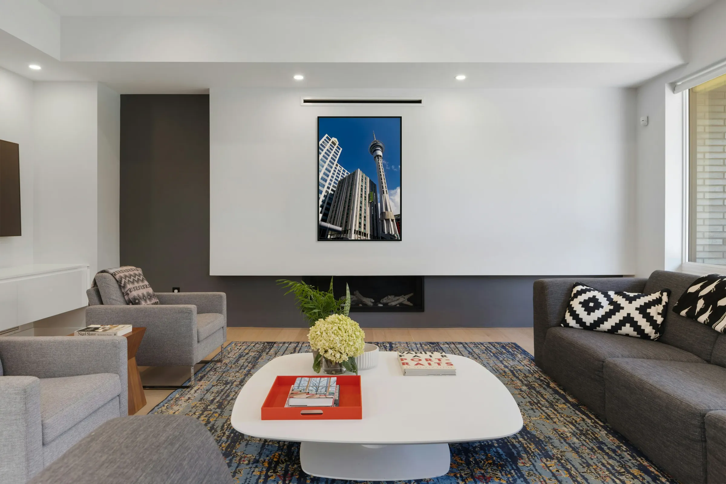 Sky Tower in Auckland showing city buildings and clear sky Frame print