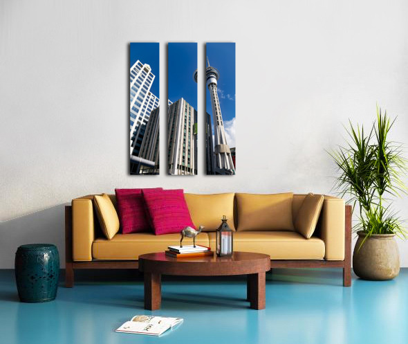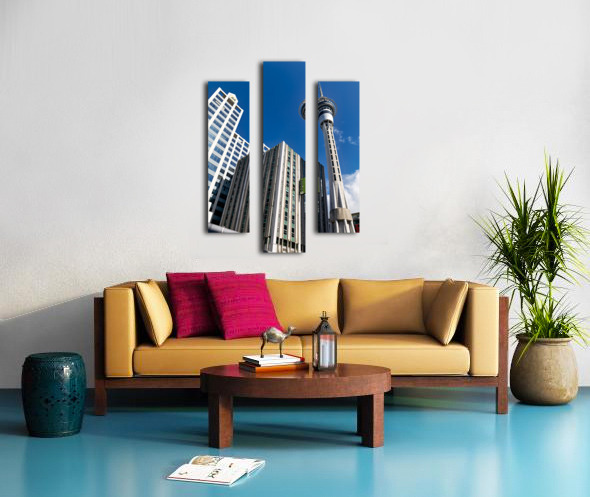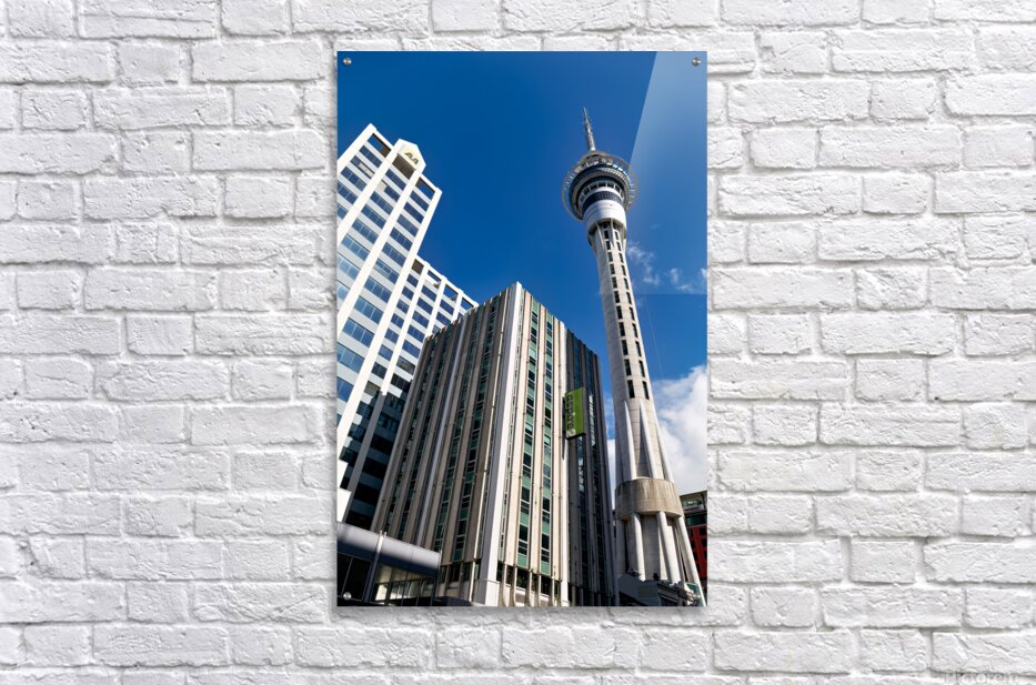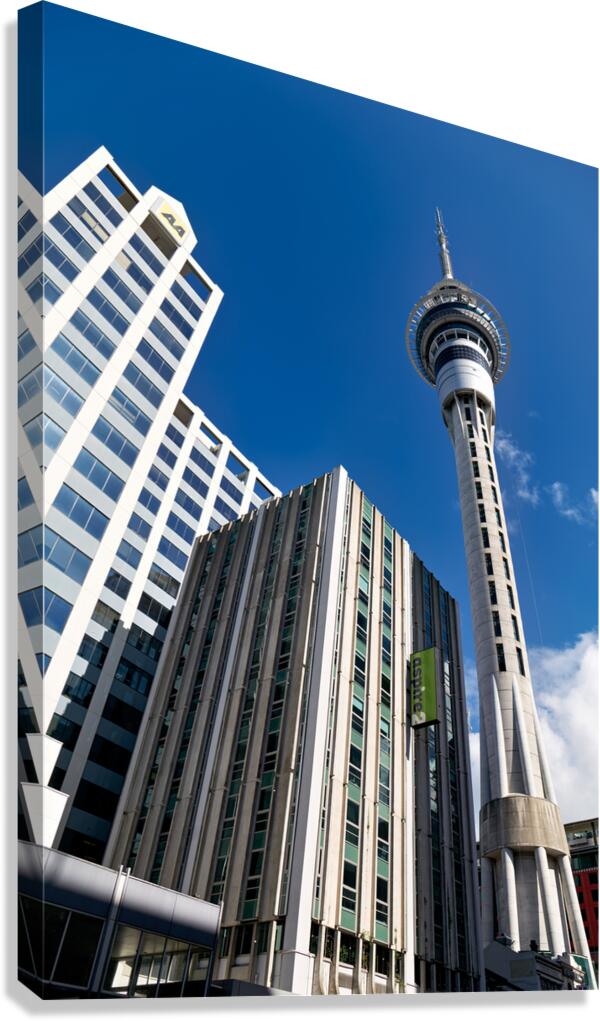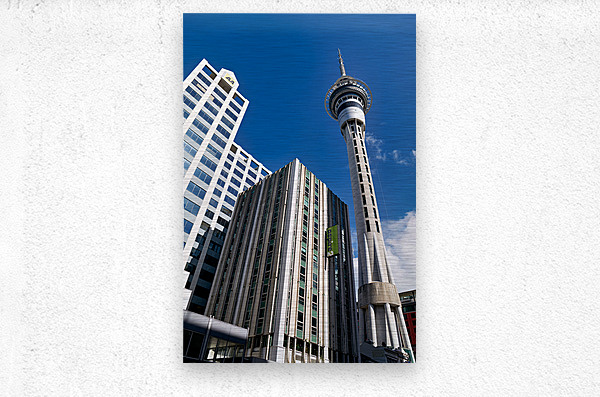 ABOUT THIS ARTWORK: SKY TOWER IN AUCKLAND SHOWING CITY BUILDINGS AND CLEAR SKY