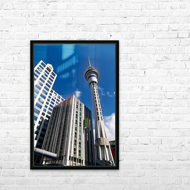 Sky Tower in Auckland showing city buildings and clear sky Picture Frame Printing