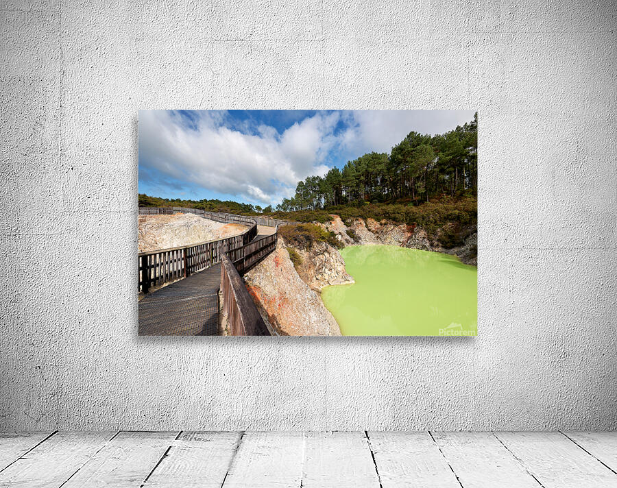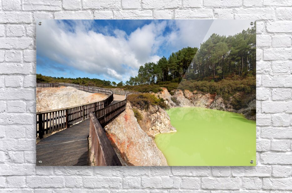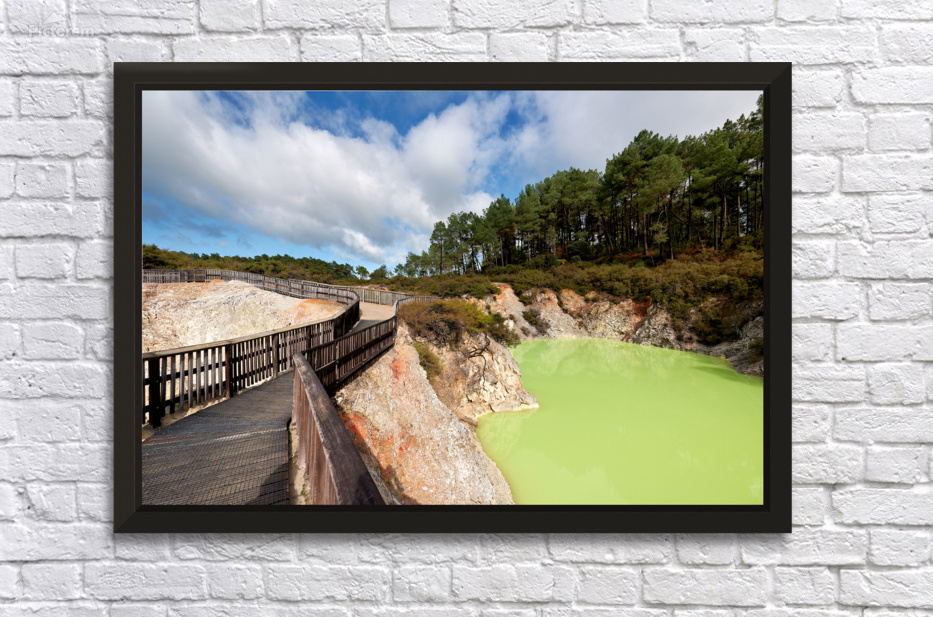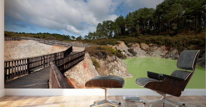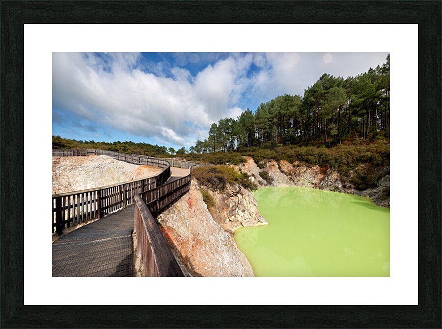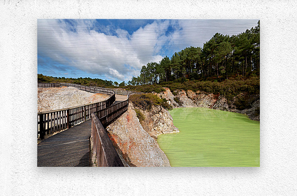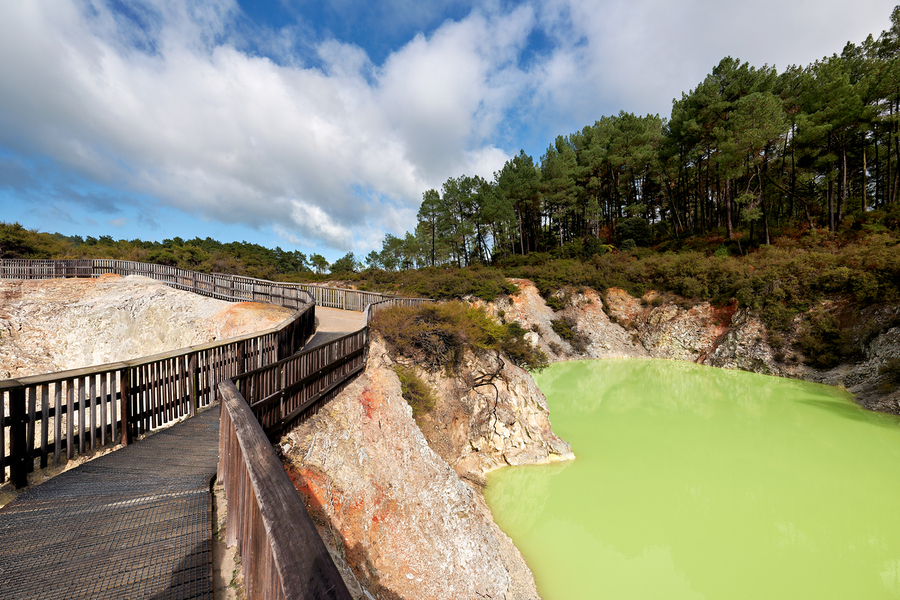 Walk along the path at Devils Bath in Waiotapu. The bright green water attracts many visitors in this unique geothermal area near Rotorua.