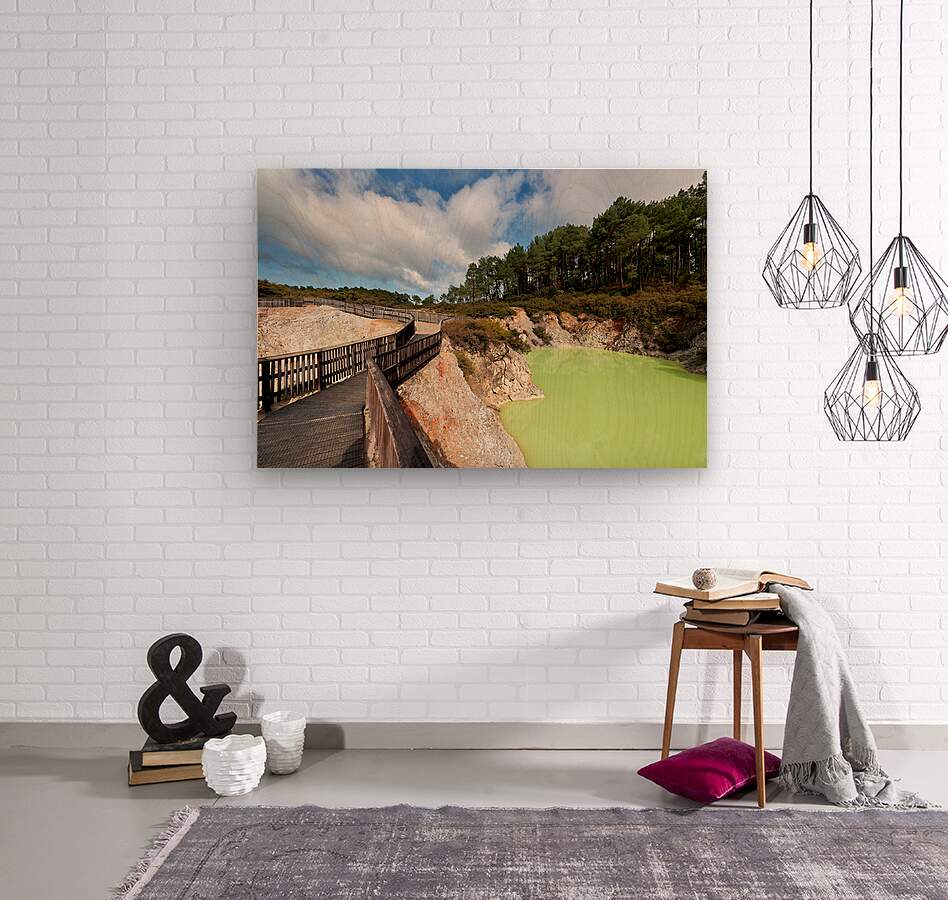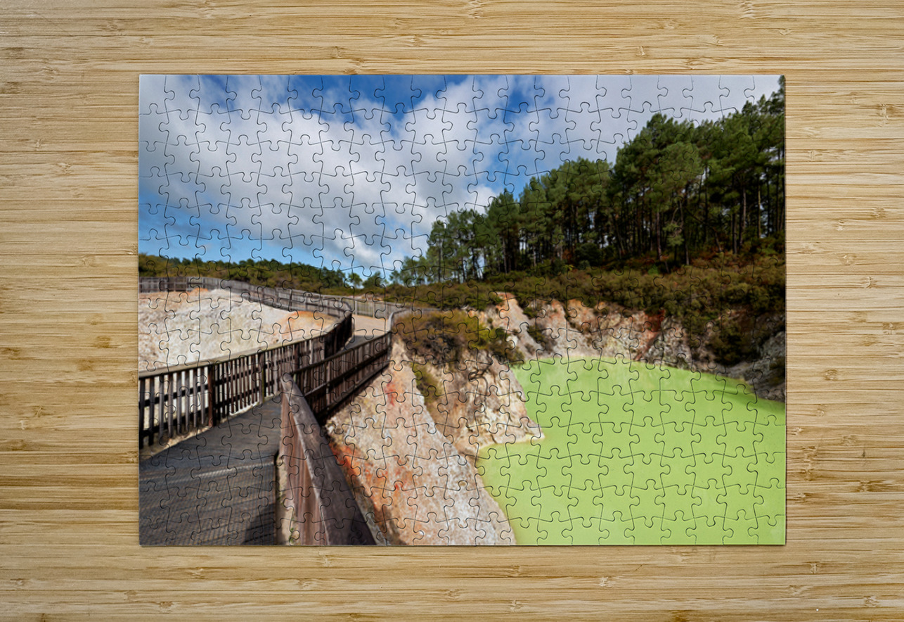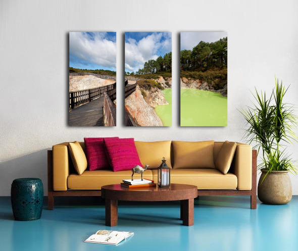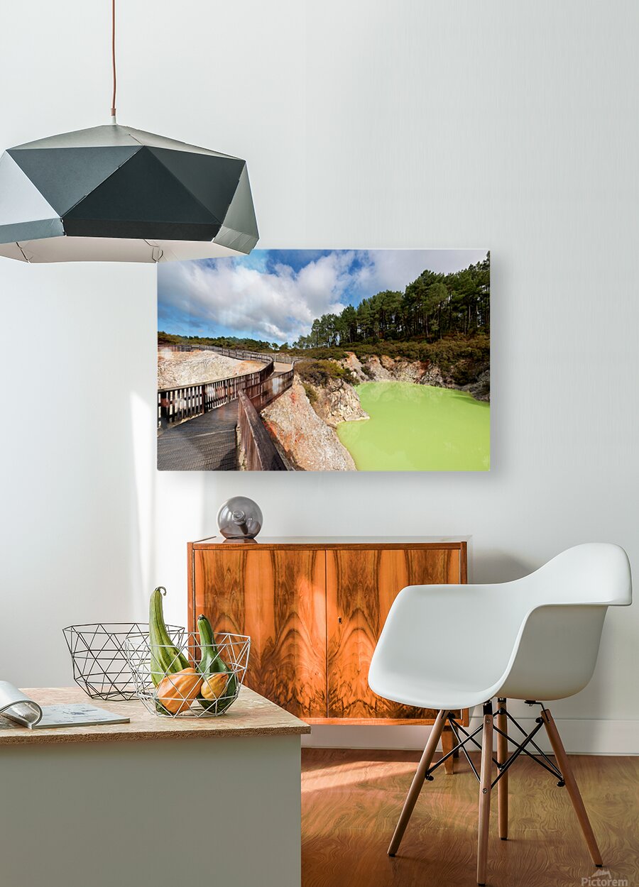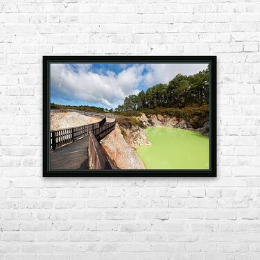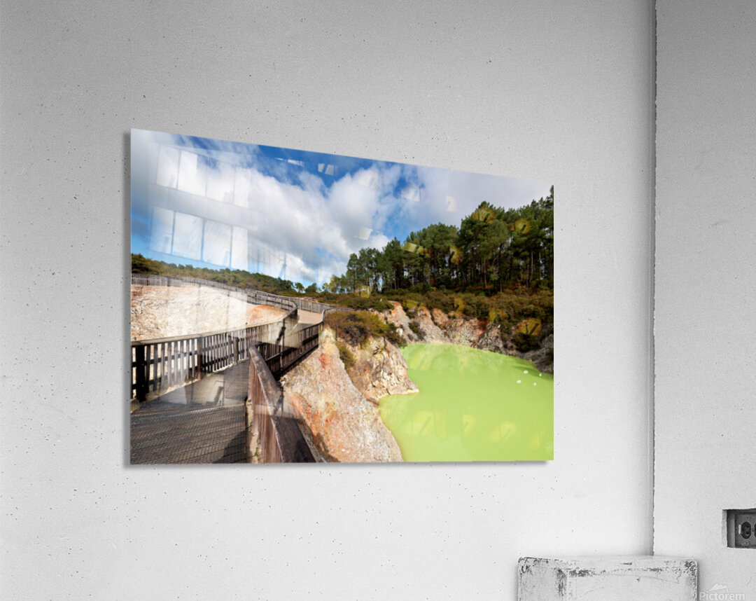 Walk along the path at Devils Bath in Waiotapu. The bright green water attracts many visitors in this unique geothermal area near Rotorua.