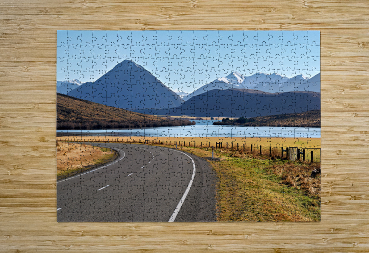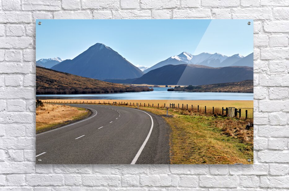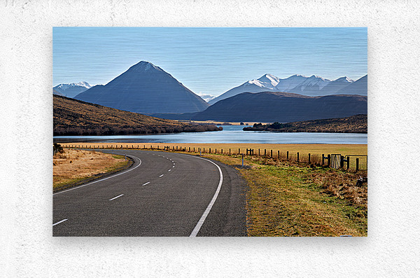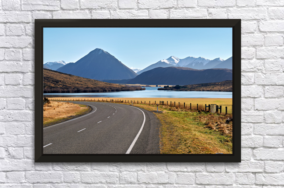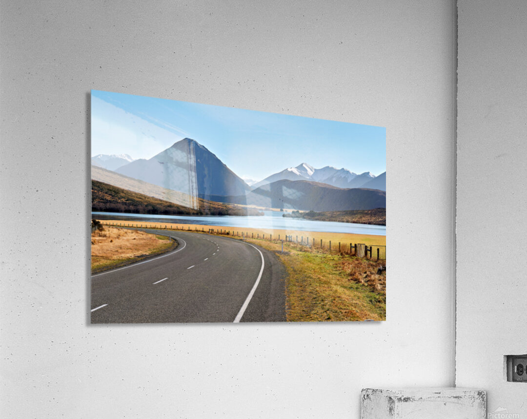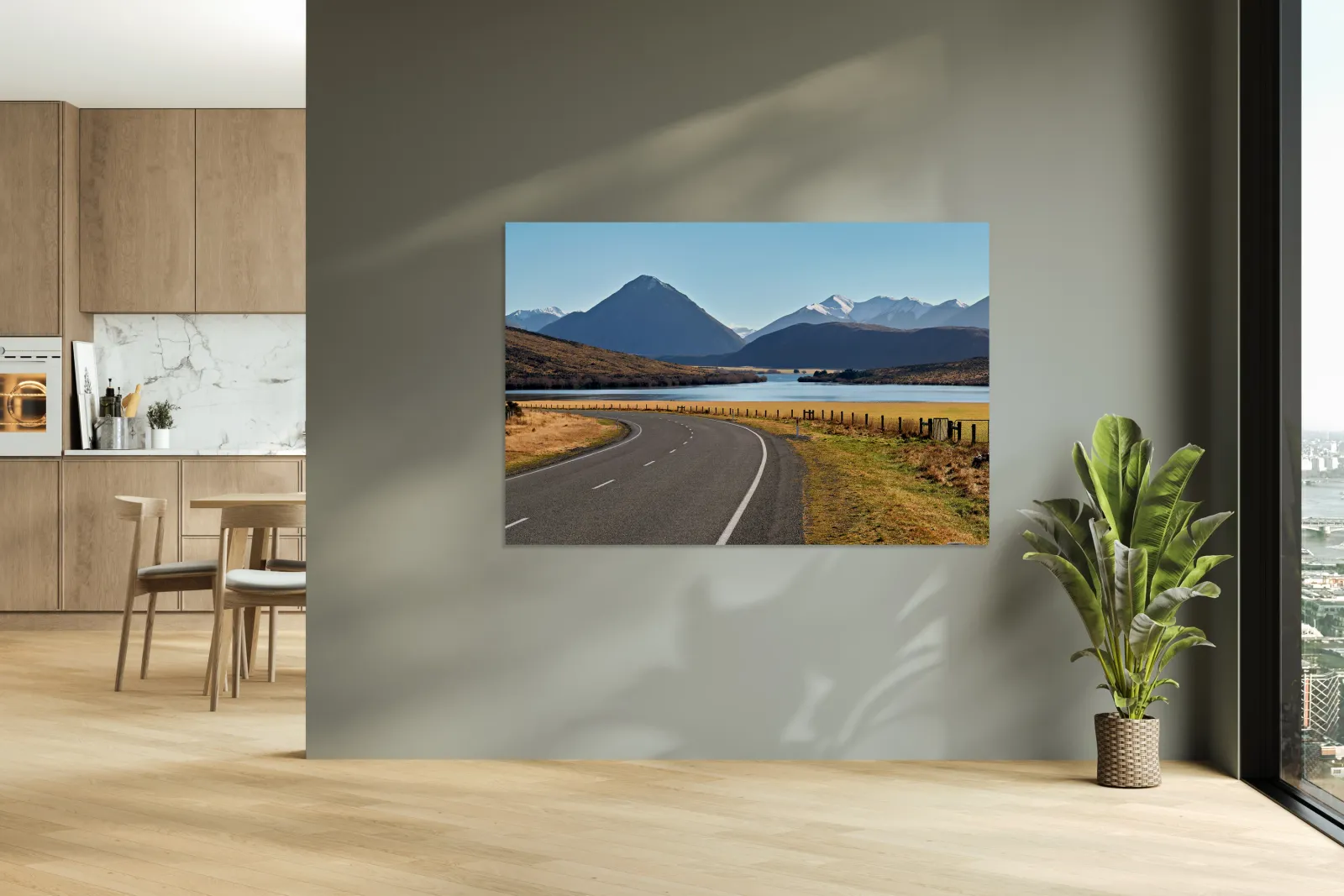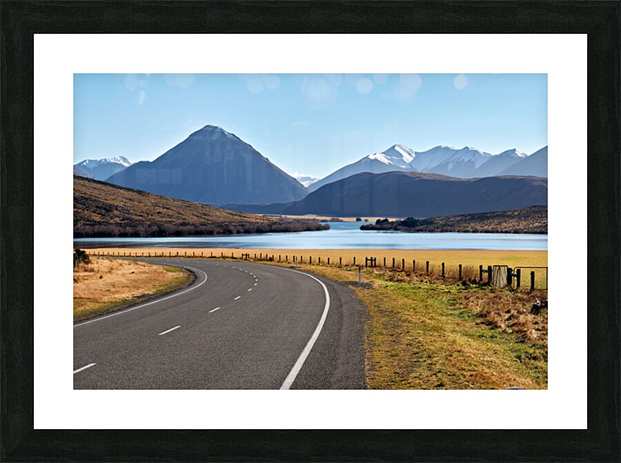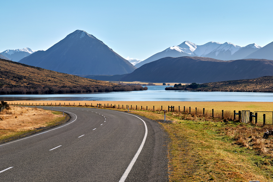 A view along State Highway 73 shows the road curving towards Arthur Pass. Lake Pearson reflects the mountains in the background.