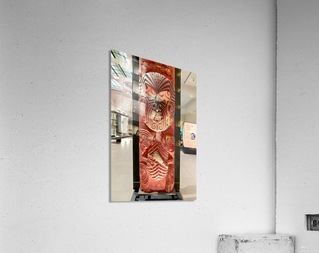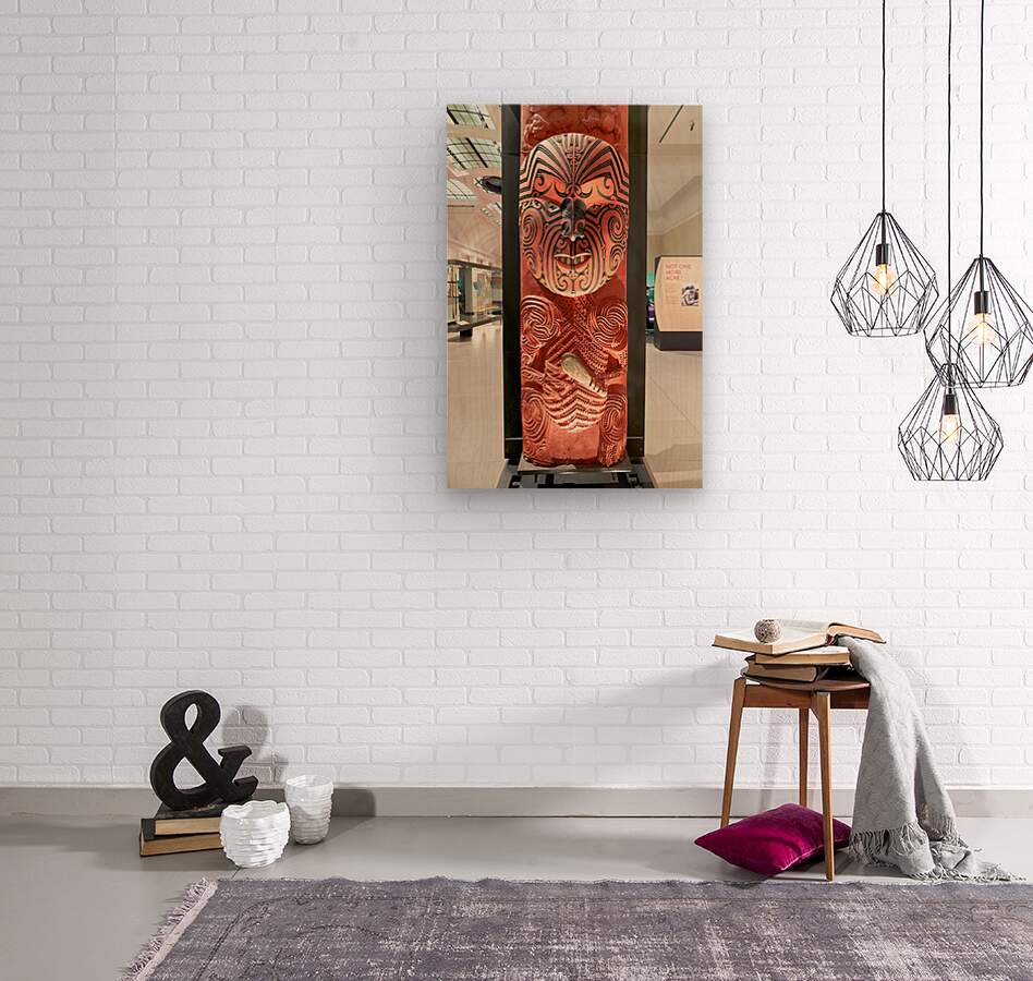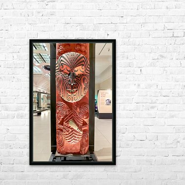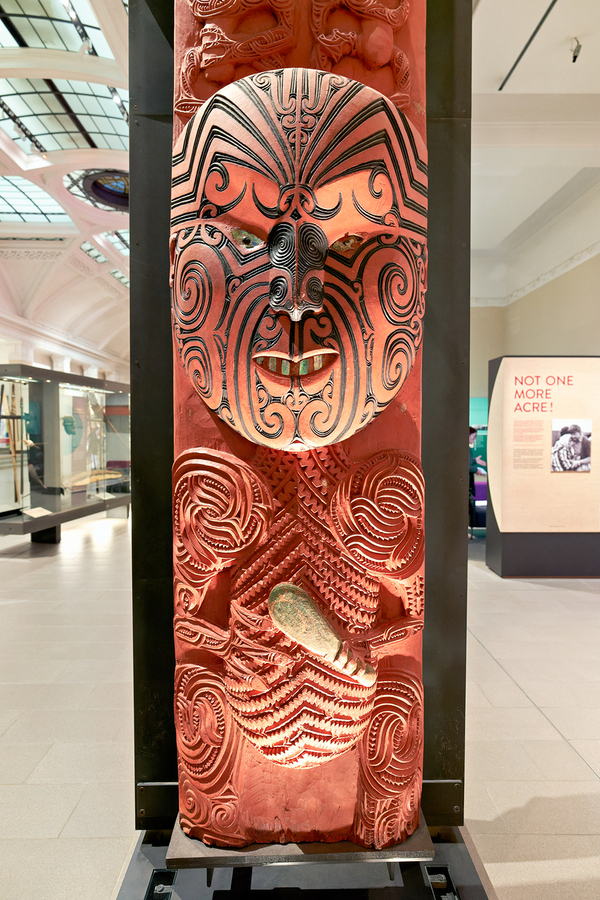 A Maori carving is shown in the Maori Natural History Gallery of the Auckland War Memorial Museum in Auckland New Zealand.