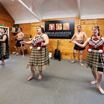 Haka dance takes place at Whakarewarewa Village in Rotorua New Zealand. Performers engage in traditional movements and expressions.