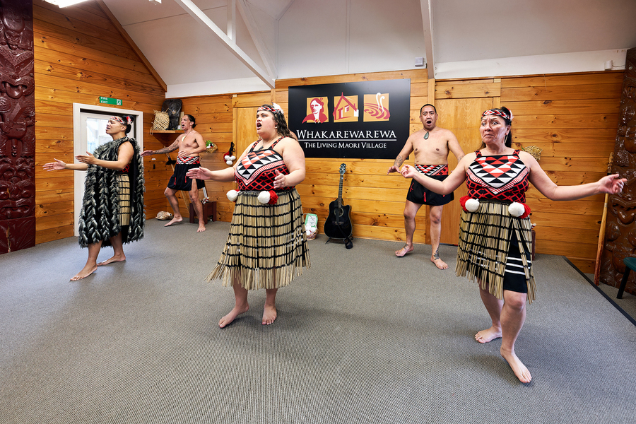 HAKA PERFORMANCE AT WHAKAREWAREWA MAORI VILLAGE IN ROTORUA