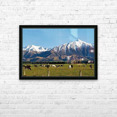 Cattles grazing in the countryside of New Zealand Southern Alps Picture Frame Printing