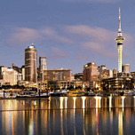 AUCKLAND SKYLINE WITH BUILDINGS AND SKY TOWER DURING EVENING