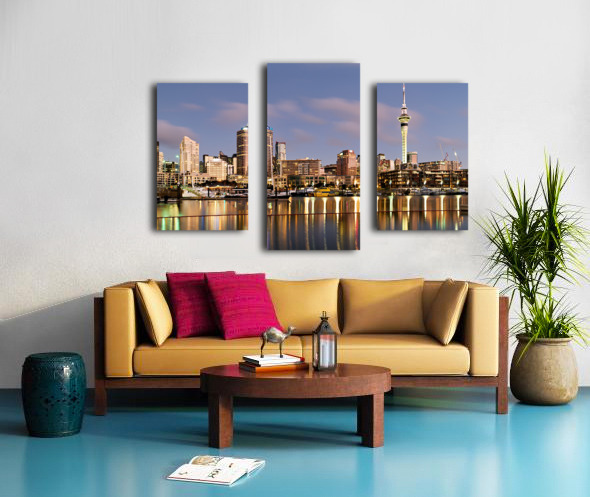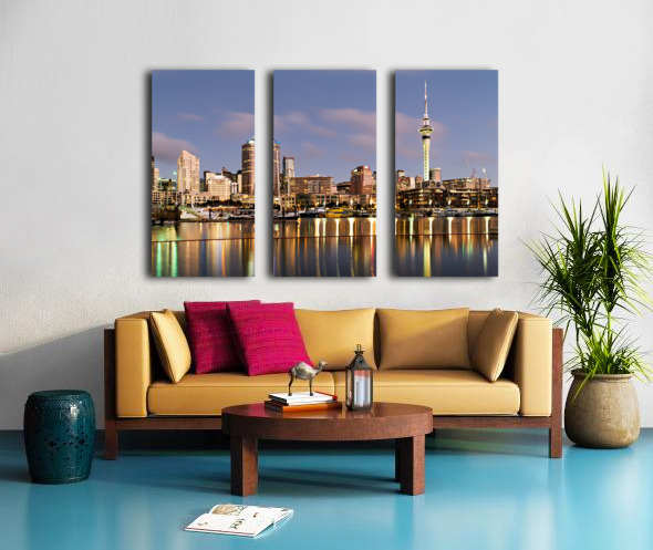 Get this artwork "Auckland skyline with buildings and Sky Tower during evening" in a framed print.