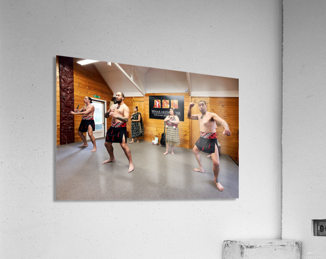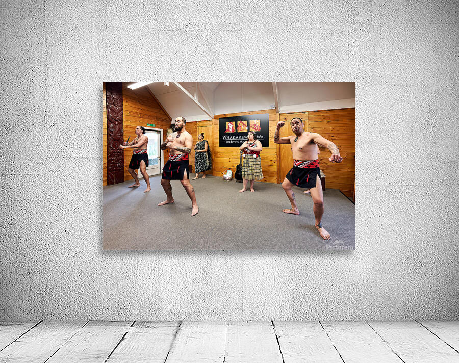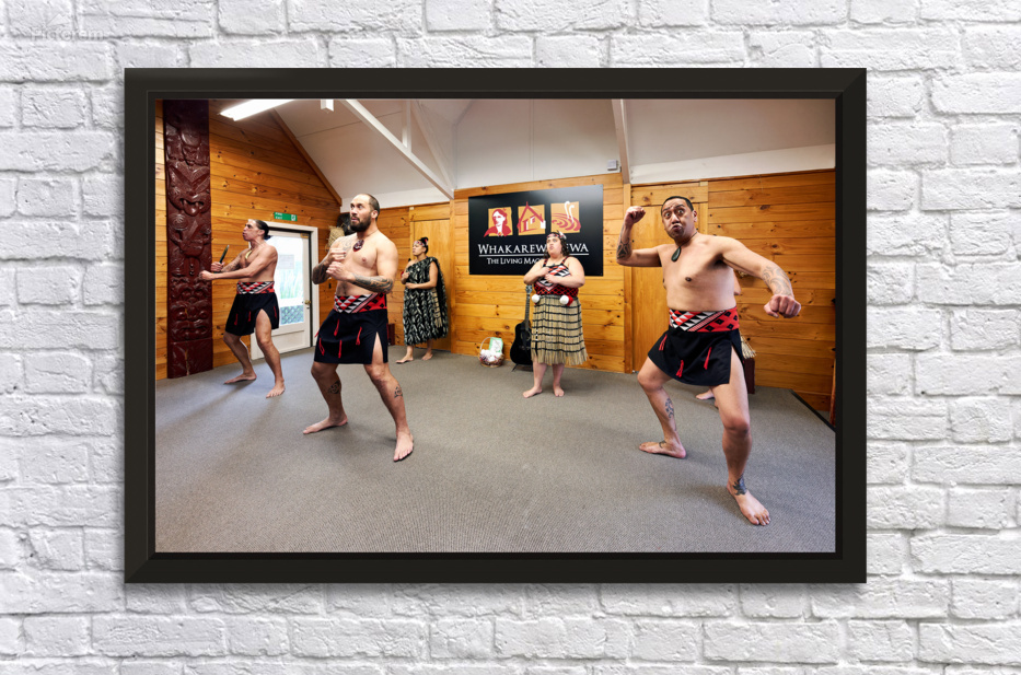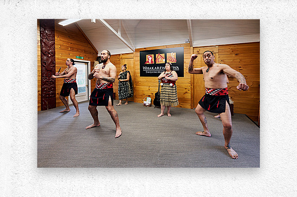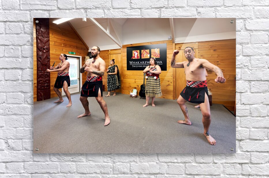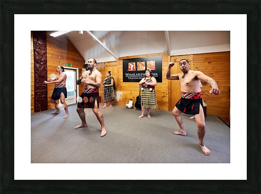 Traditional haka dance is performed by men at Whakarewarewa living Maori Village in Rotorua New Zealand during a cultural event.