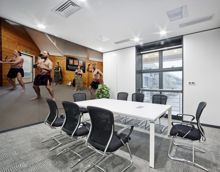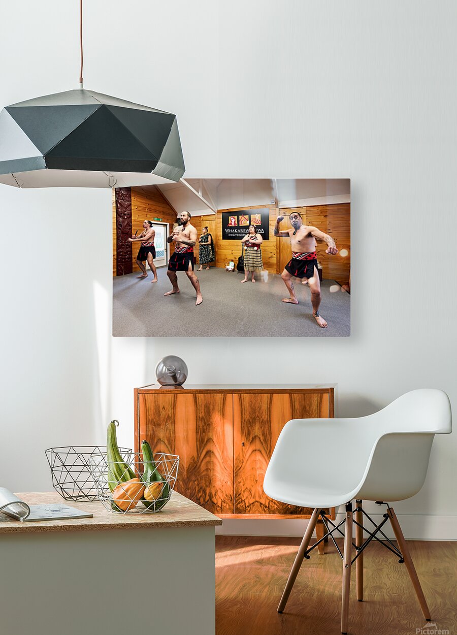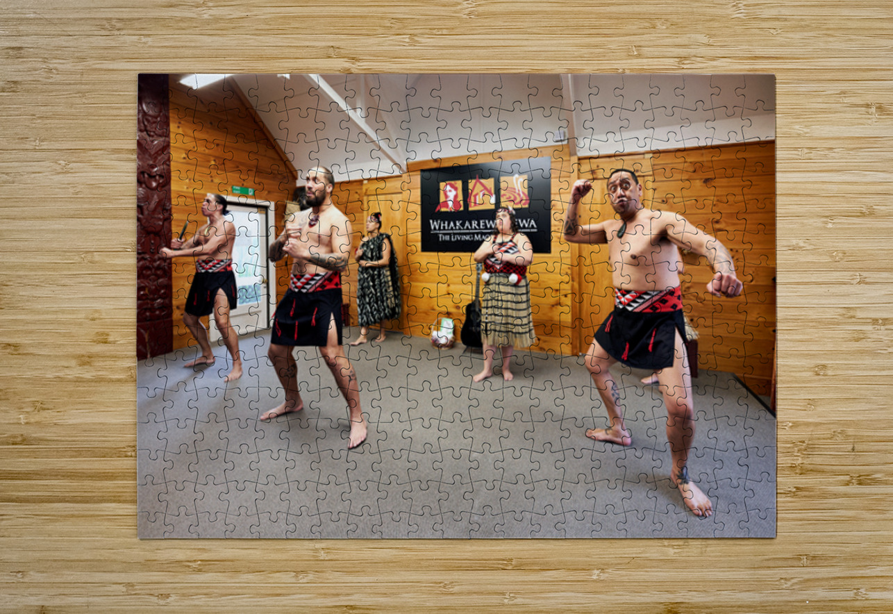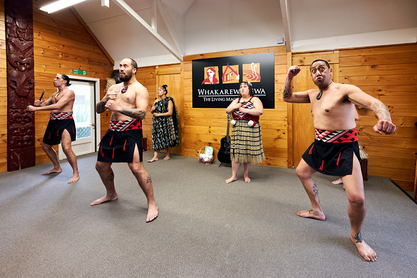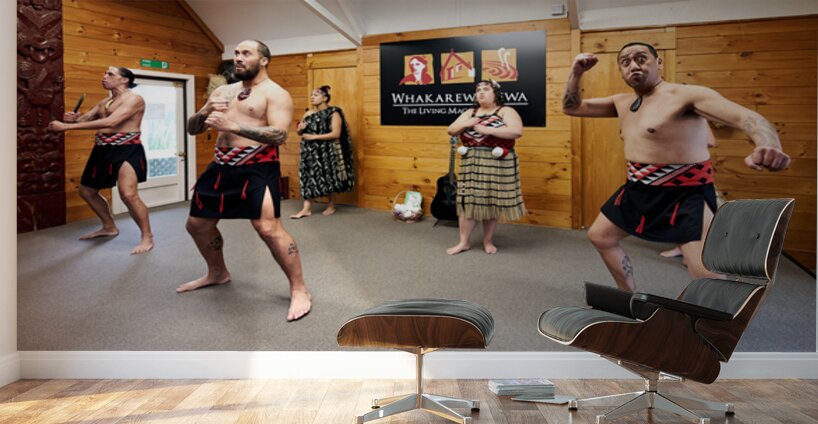 Traditional haka dance is performed by men at Whakarewarewa living Maori Village in Rotorua New Zealand during a cultural event.