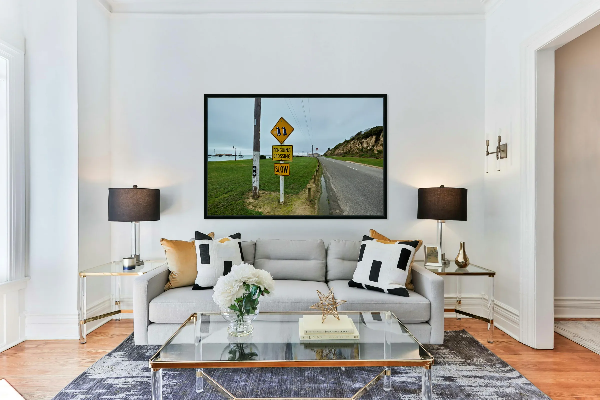Penguin crossing sign alerts wildlife in Oamaru NZ Picture Frame Printing