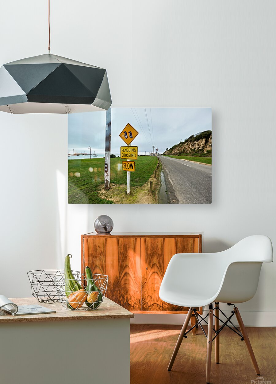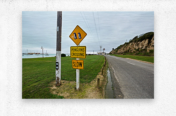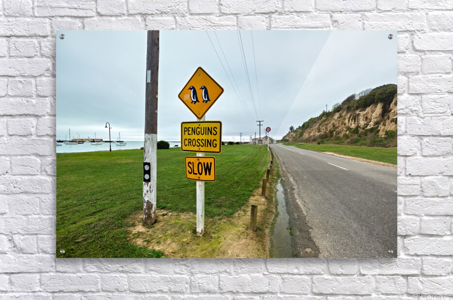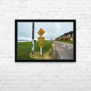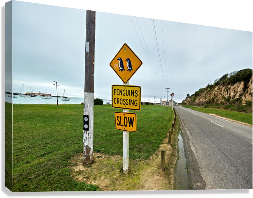 Get this artwork "Penguin crossing sign alerts wildlife in Oamaru NZ" in a framed print.