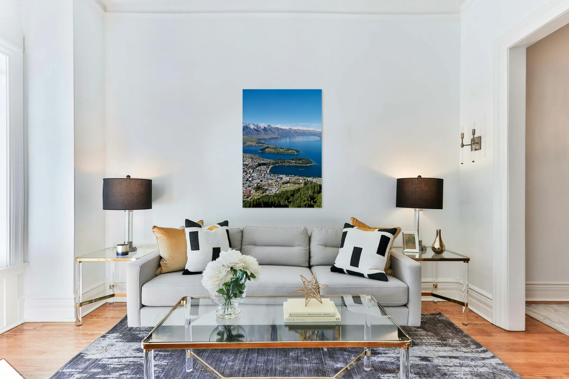 Aerial view of Lake Wakatipu near Queenstown in New Zealand Frame print
