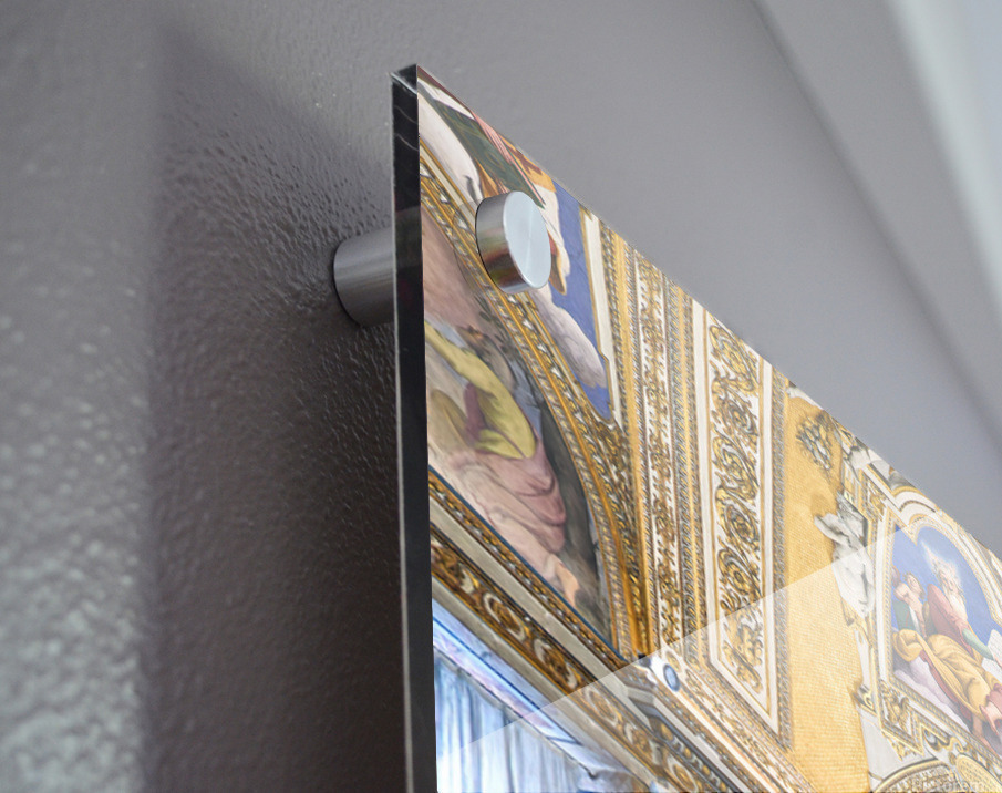 Printed to the edge - Ready to hang - provided with 4 premium polished aluminum stand off ( wall screws and mounting hardware provided )