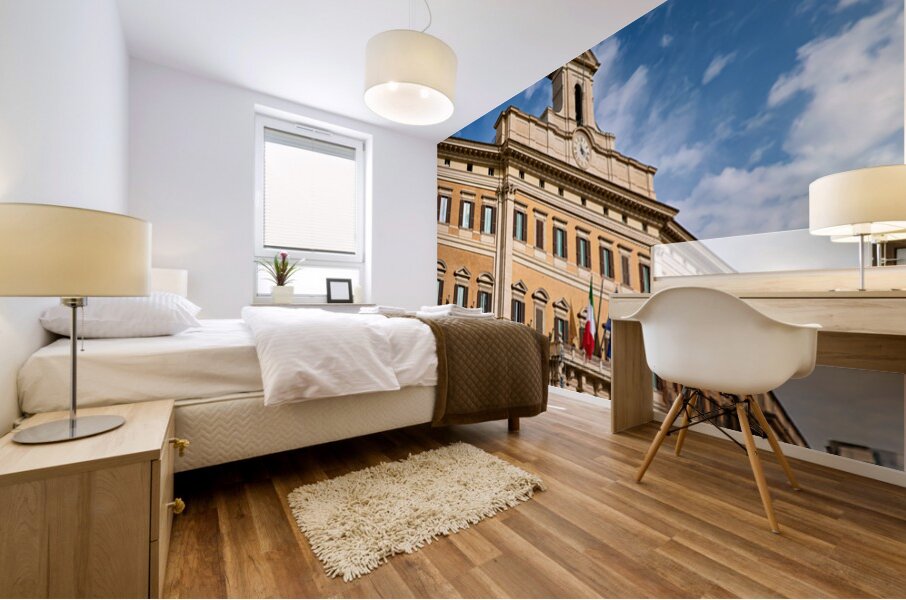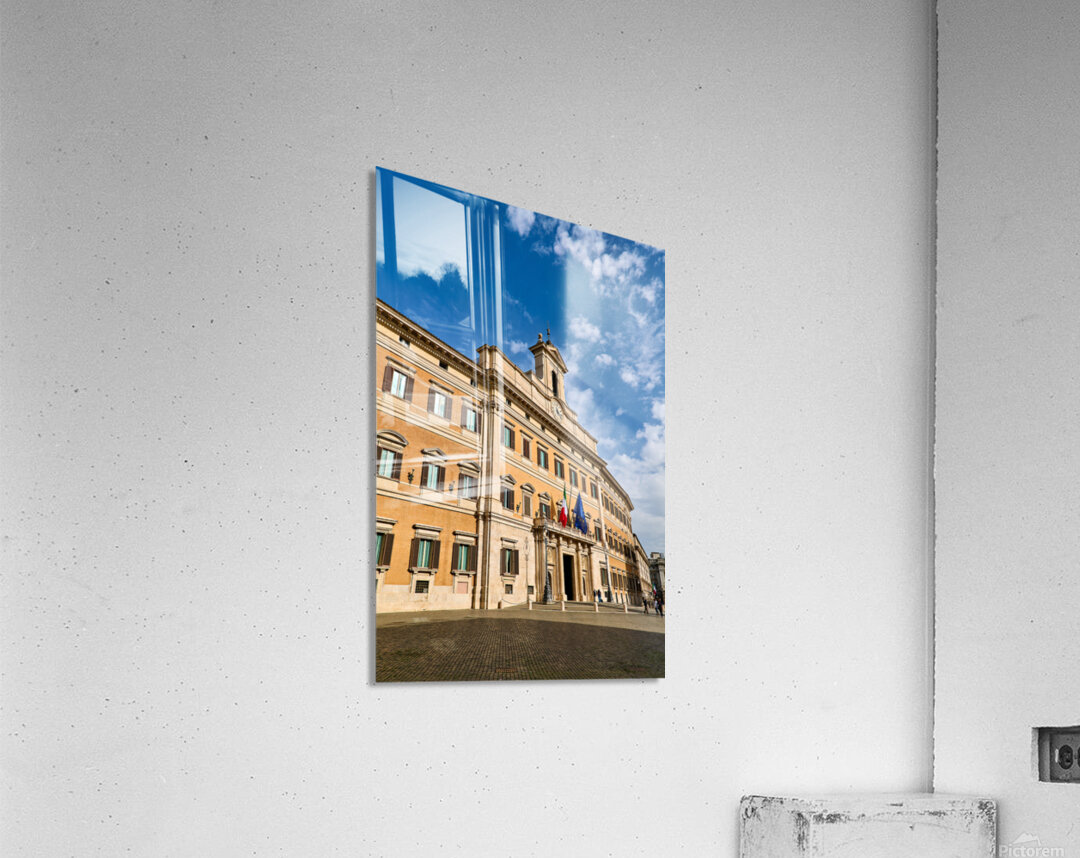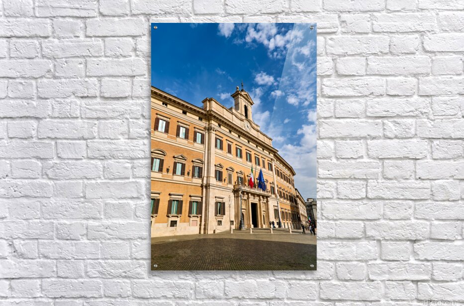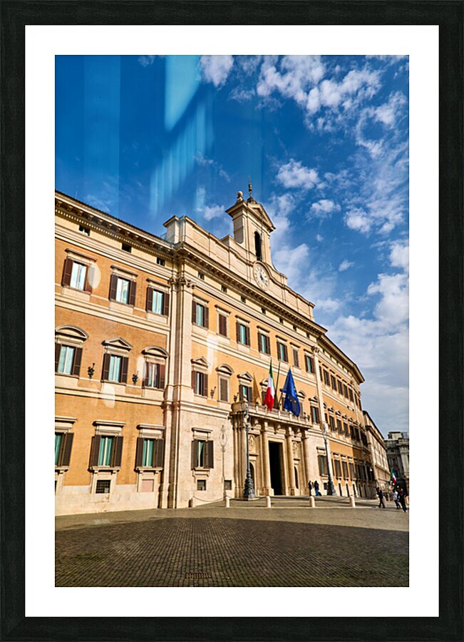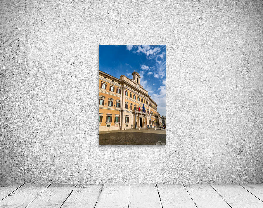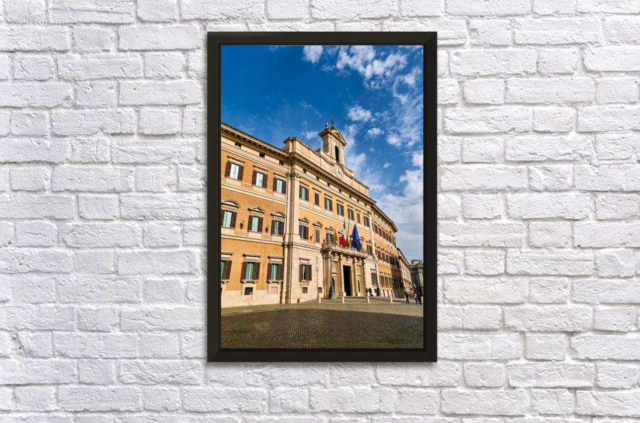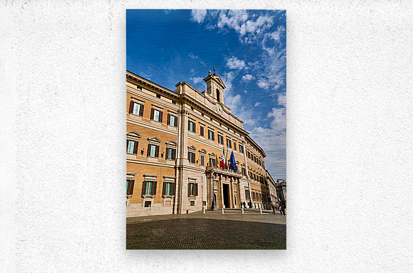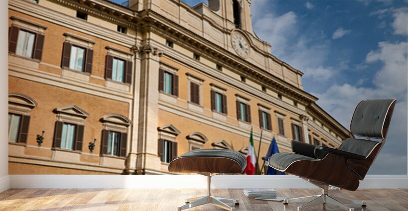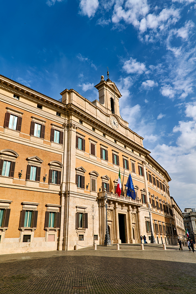 People walk near Palazzo Montecitorio in Rome. The building serves as the seat of the Chamber of Deputies in Italy.