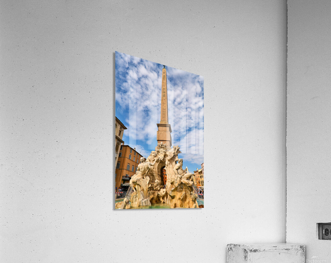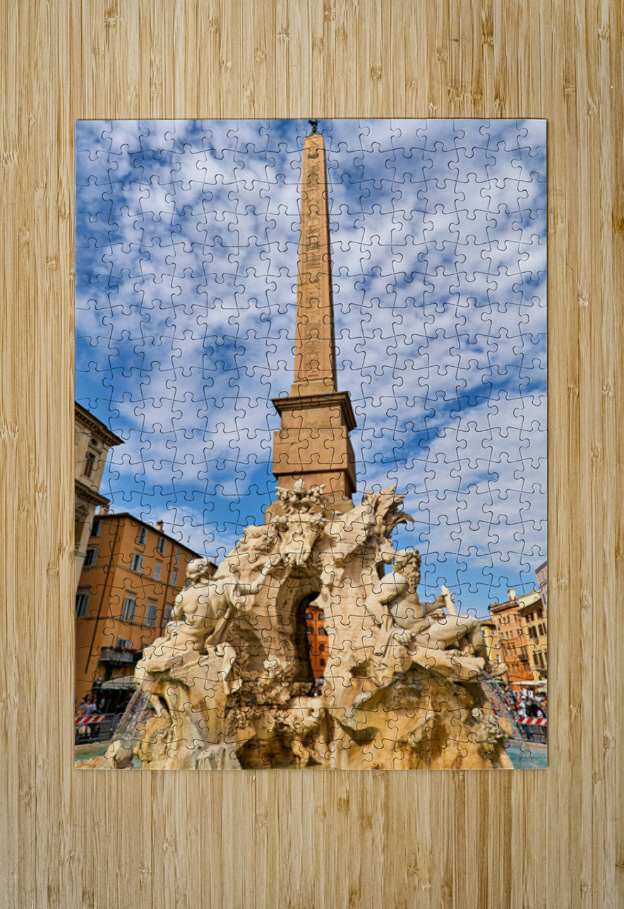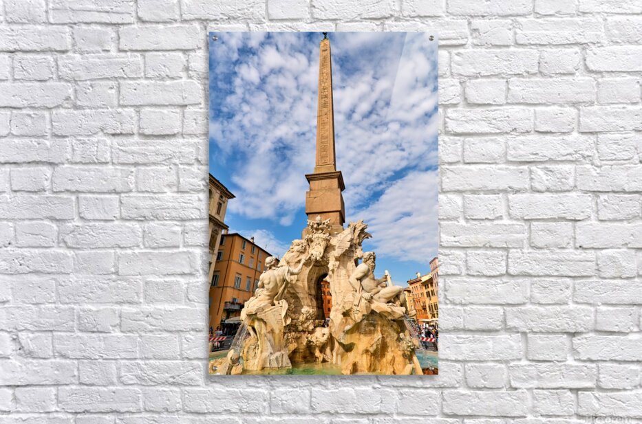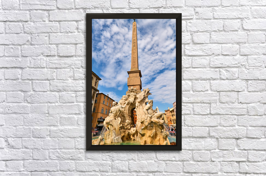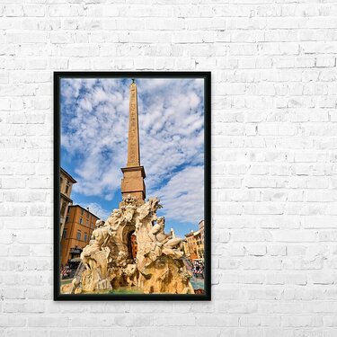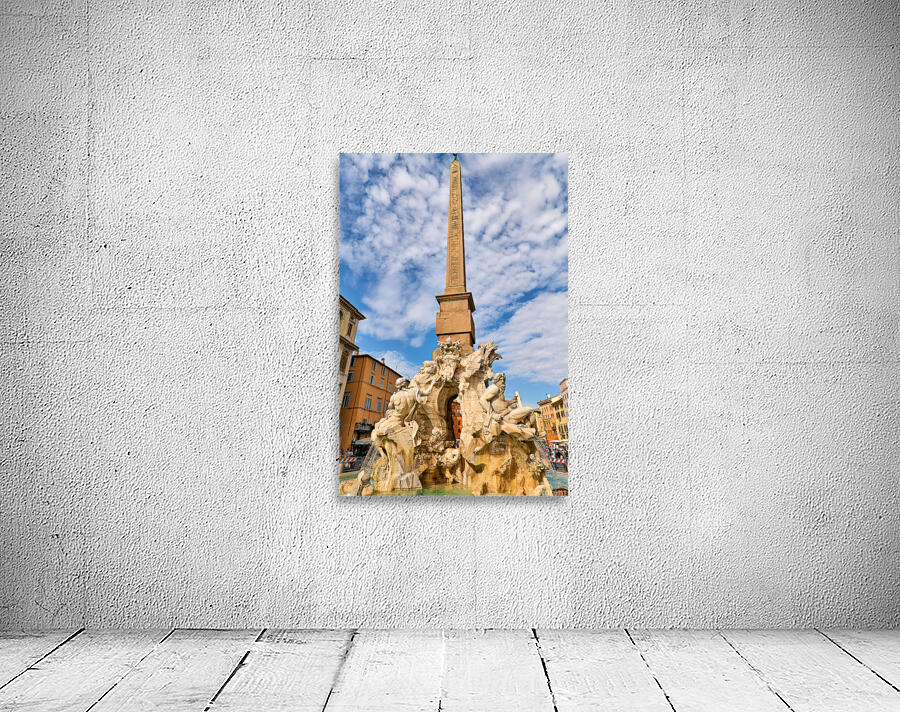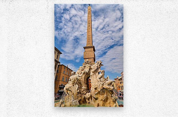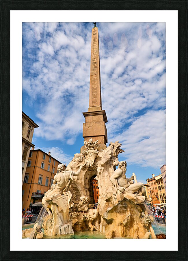 Visitors admire the Fontana dei Quattro Fiumi in Piazza Navona. The fountain features sculptures by Gian Lorenzo Bernini and an ancient obelisk.
