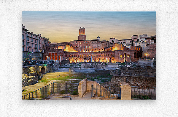 ABOUT THIS ARTWORK: TRAJANS MARKET IN ROME DURING SUNSET AT FORI IMPERIALI