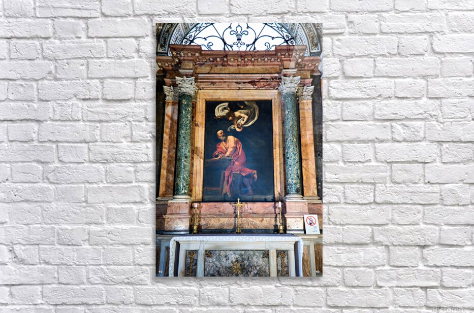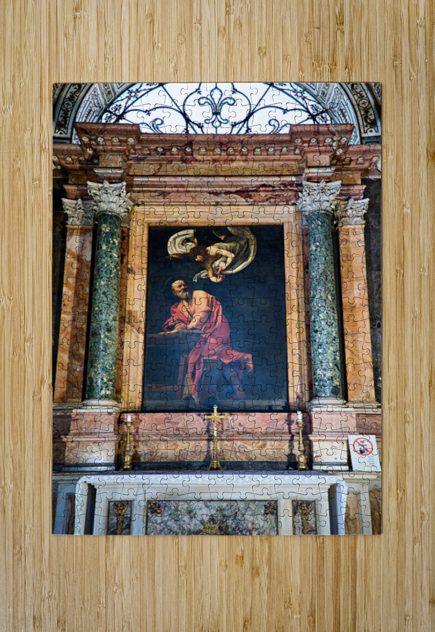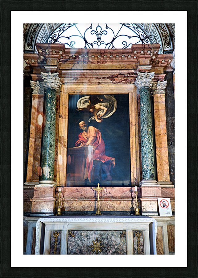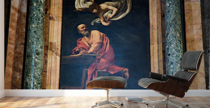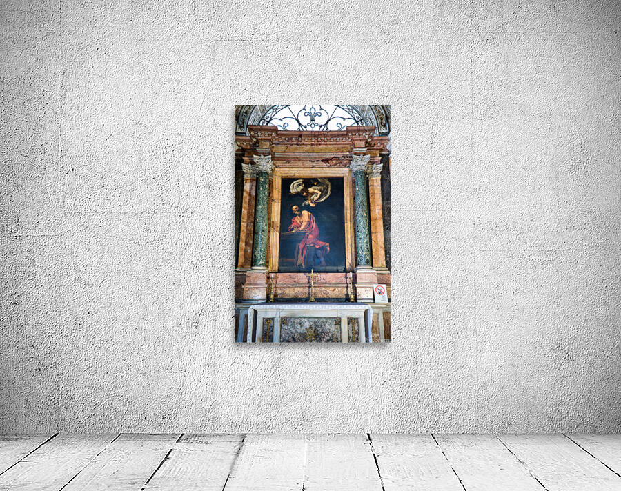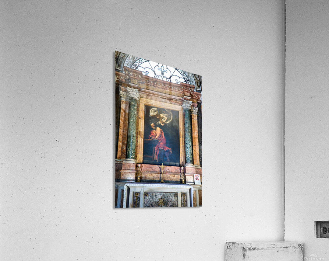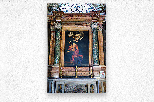 Visitors view the painting of Saint Matthew by Caravaggio in Rome. The artwork is part of the churchs rich history and attracts many art lovers.