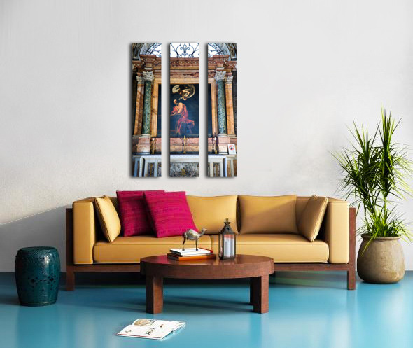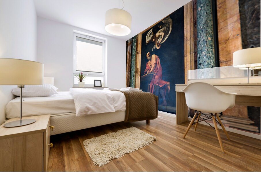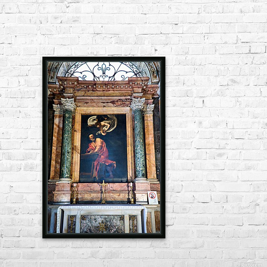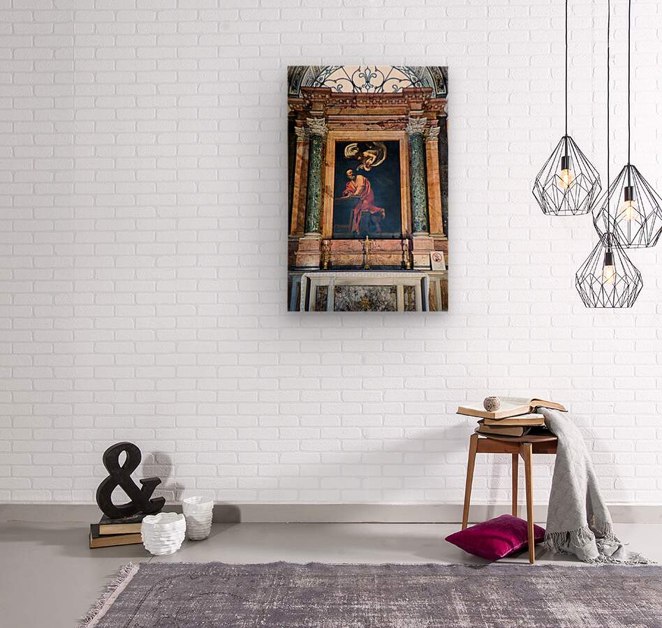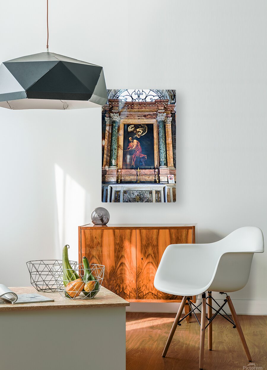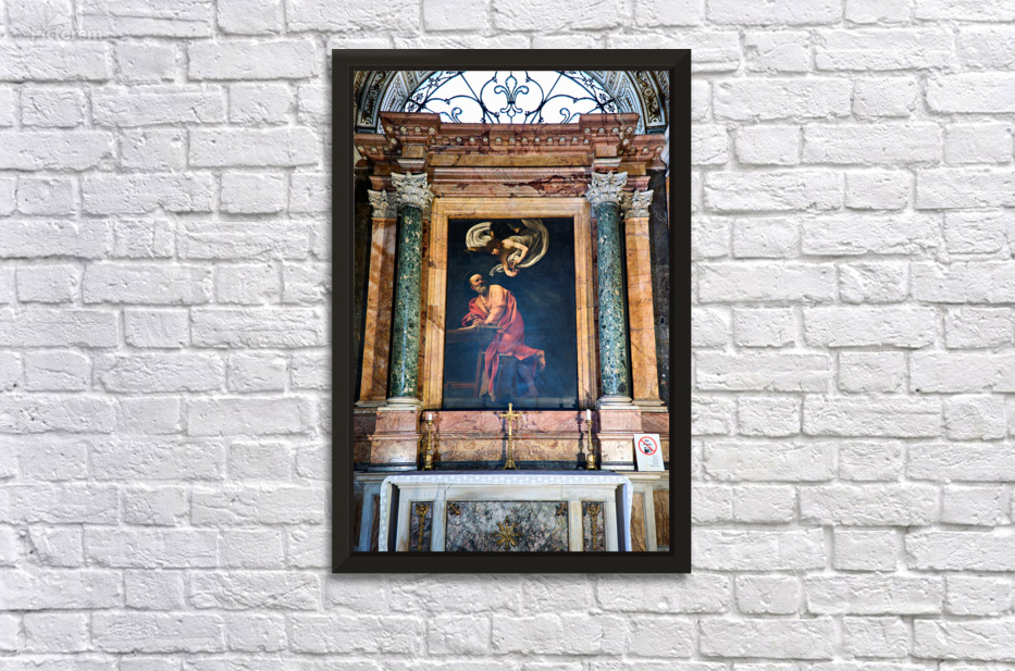 Visitors view the painting of Saint Matthew by Caravaggio in Rome. The artwork is part of the churchs rich history and attracts many art lovers.