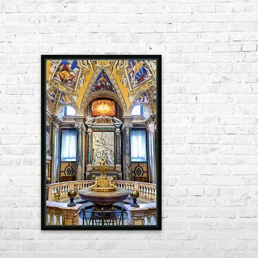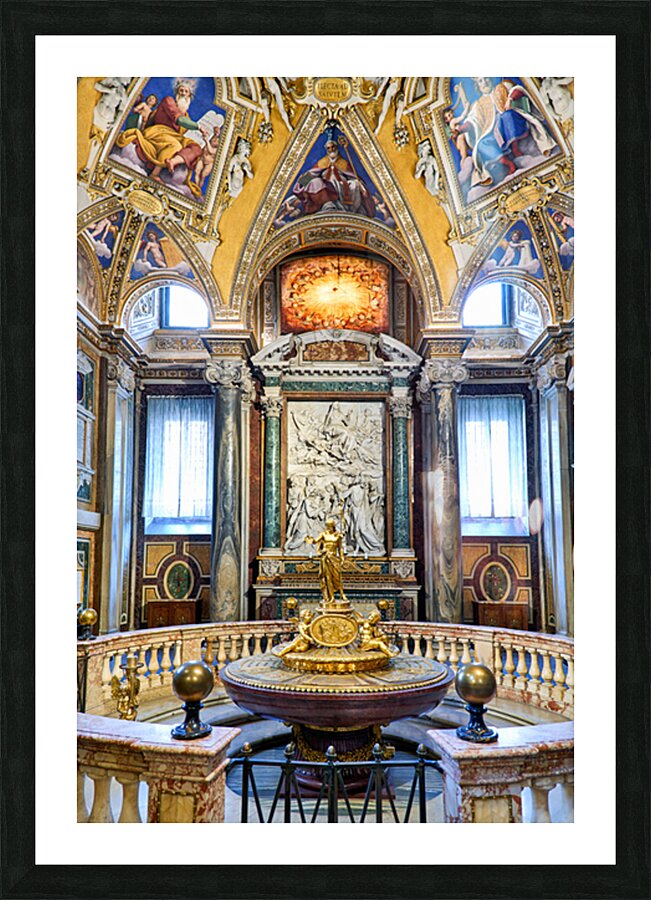 People view the baptistery at Basilica of Saint Mary Major in Rome Lazio Italy. The area has notable artwork and historical features.