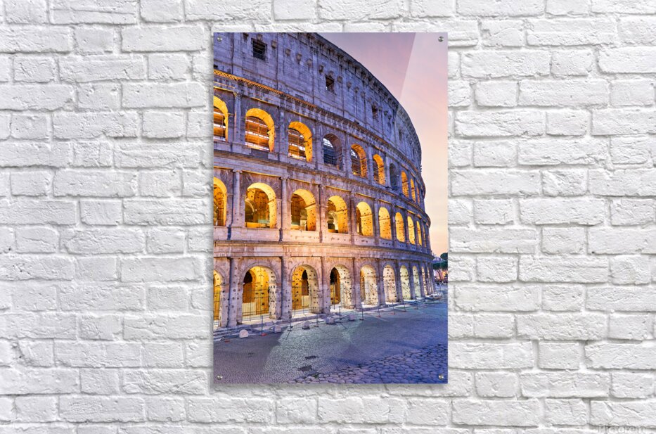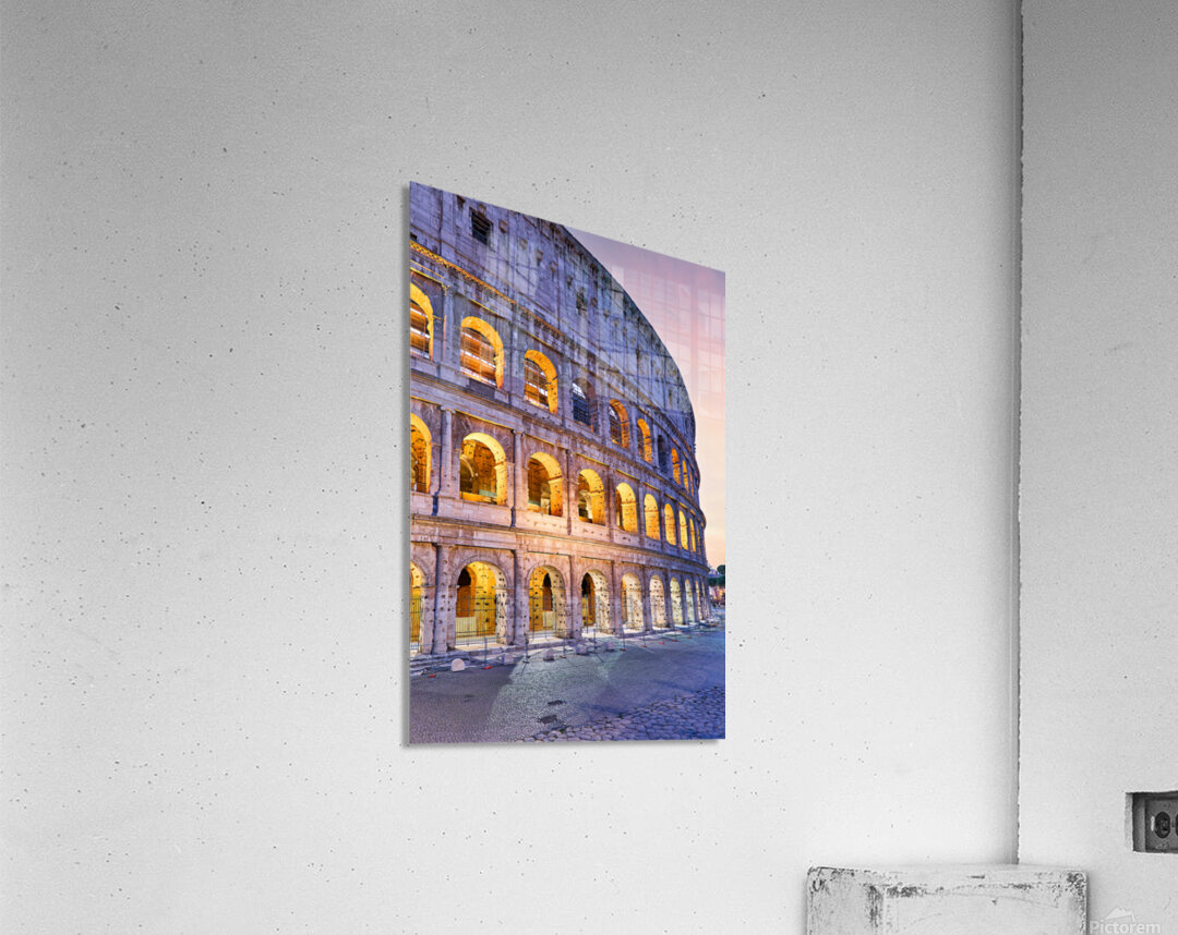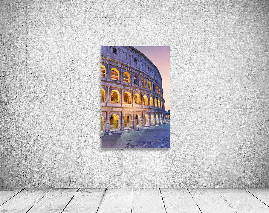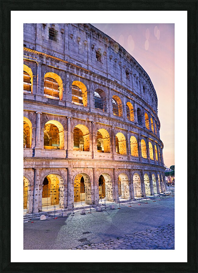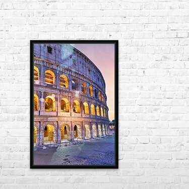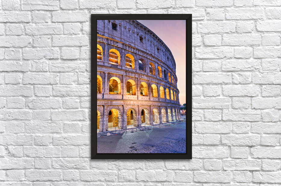 "Exploring Colosseum in Rome during twilight hours" in a framed print.