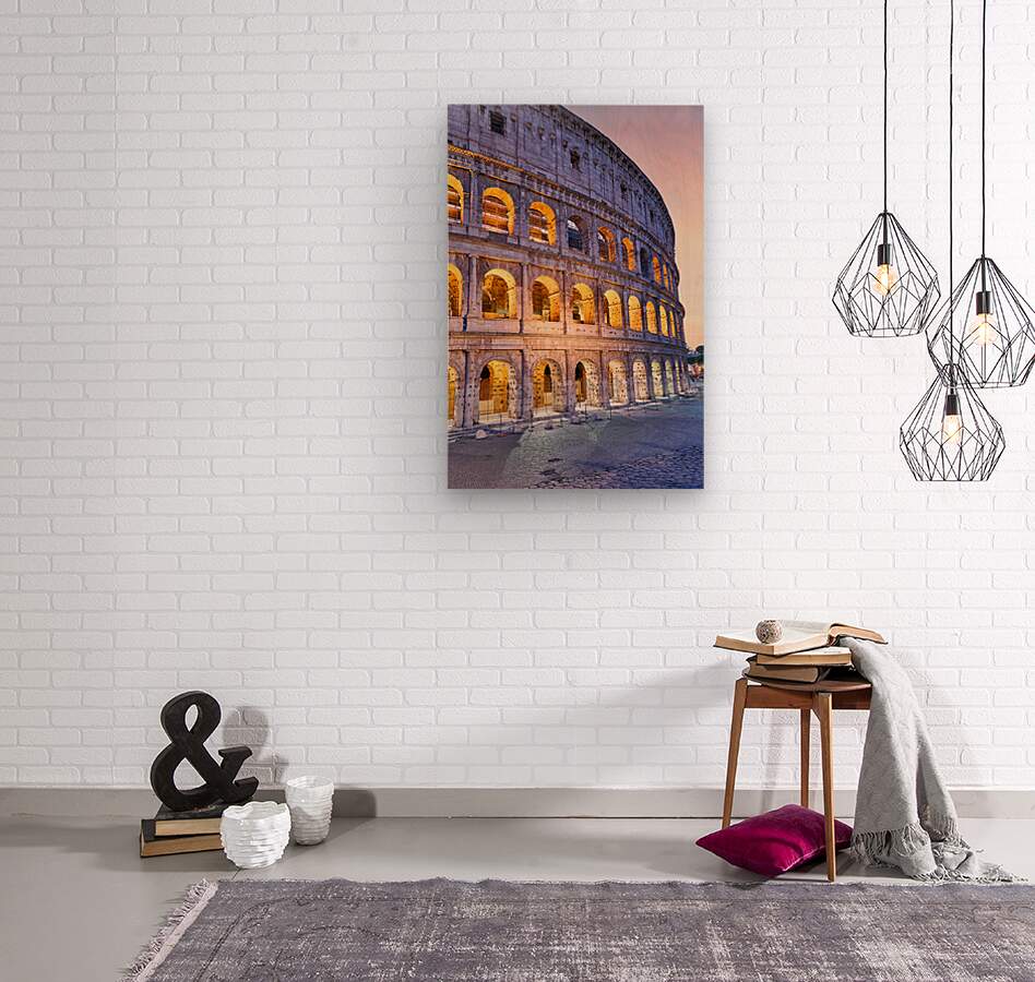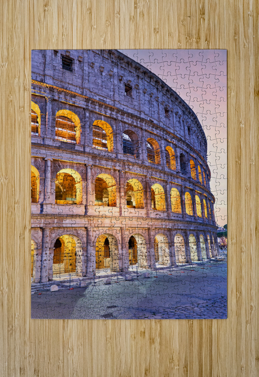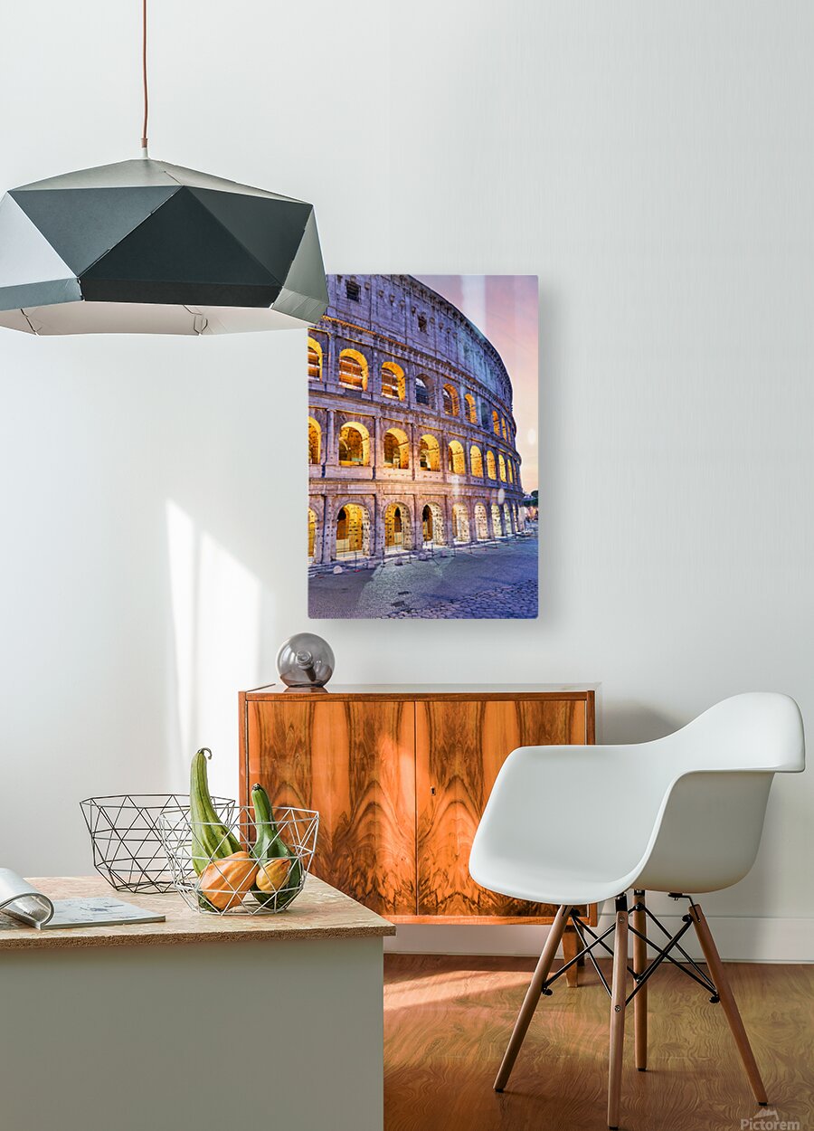 "Exploring Colosseum in Rome during twilight hours" in a framed print.