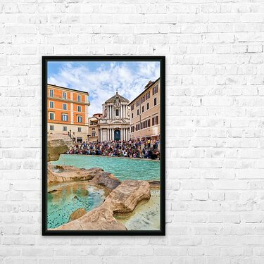 Get this artwork "Crowd enjoys the lively atmosphere at Trevi Fountain in Rome" in a framed print.