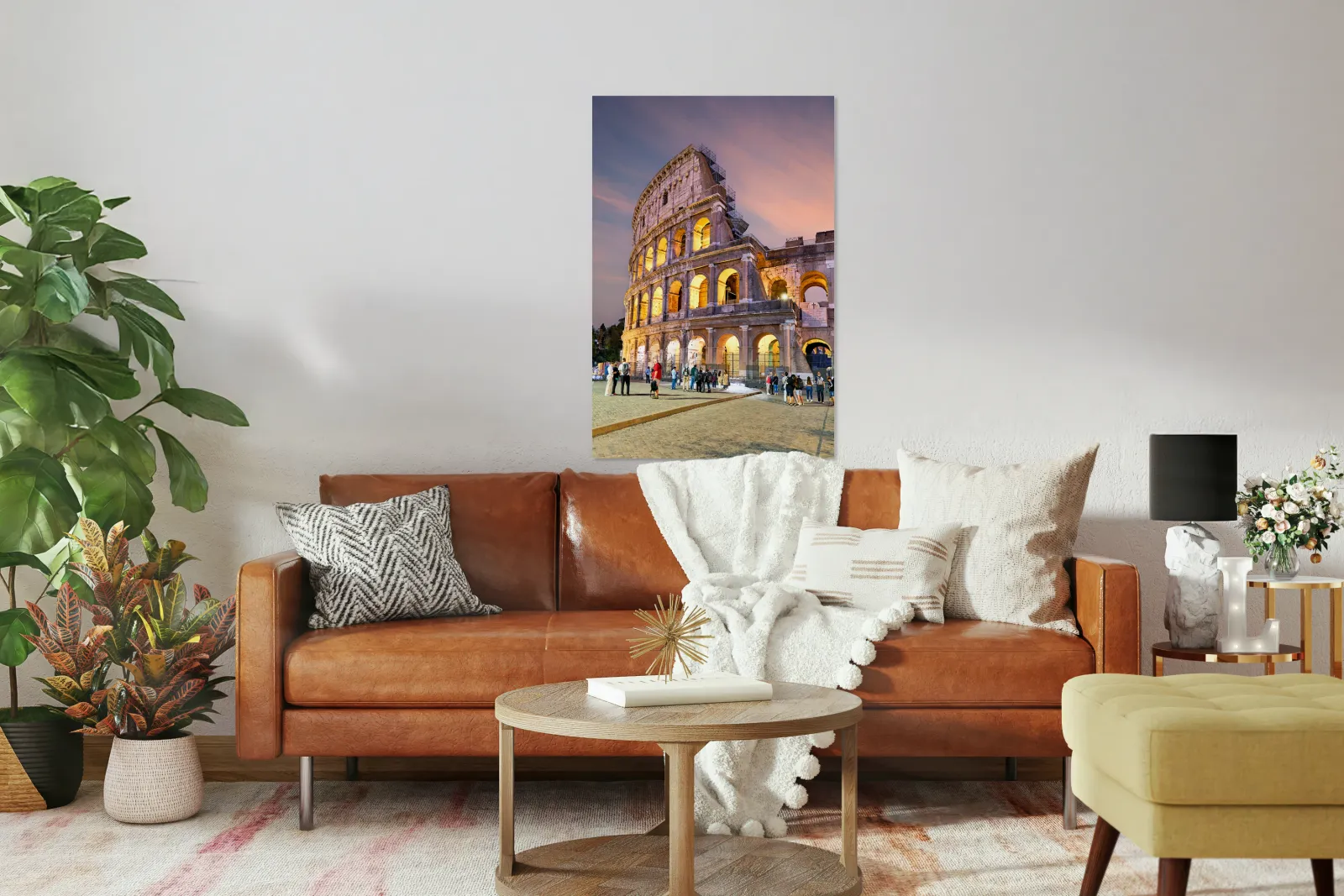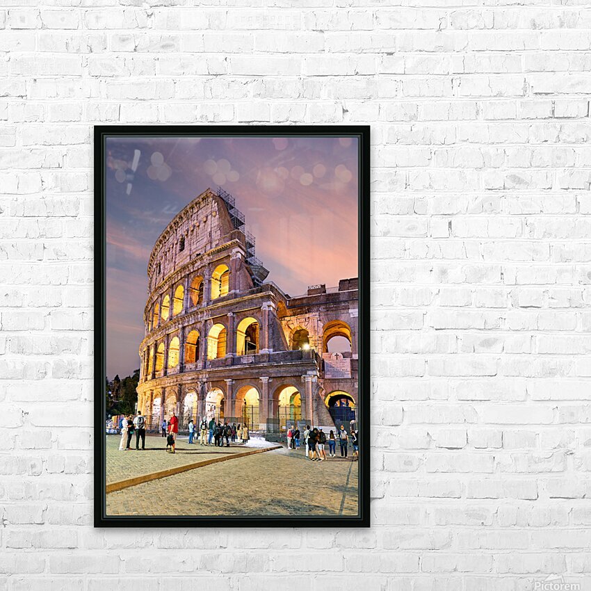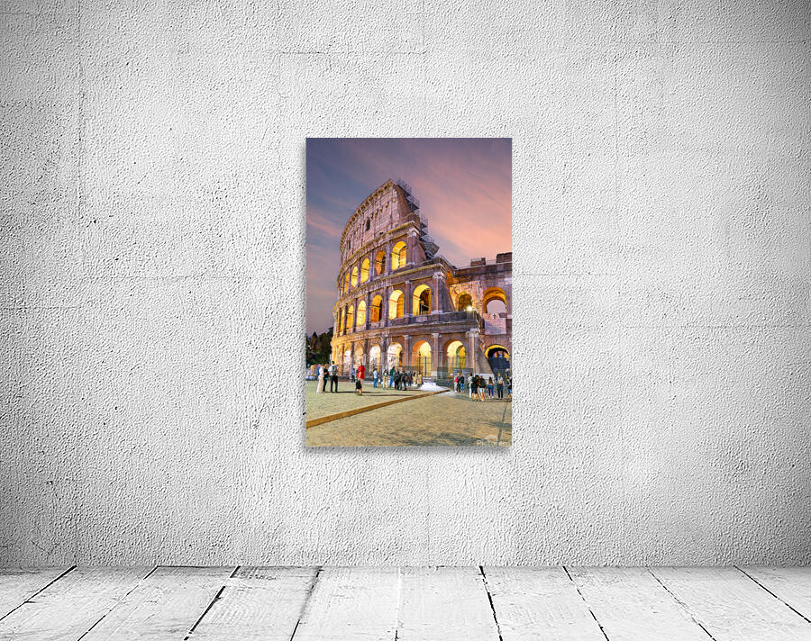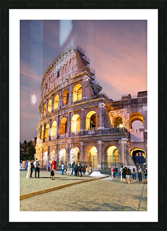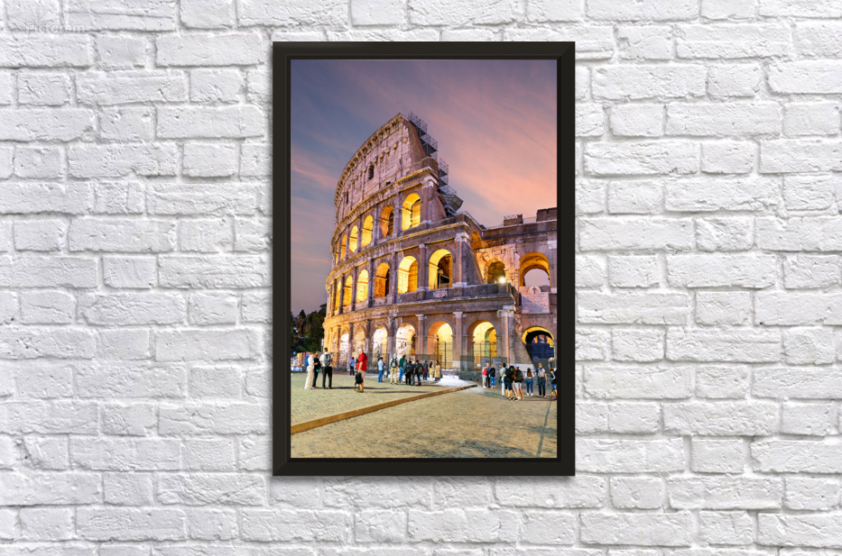 "Exploring the Colosseum at dusk in Rome Italy" in a framed print.