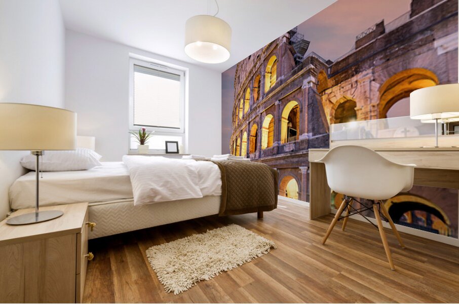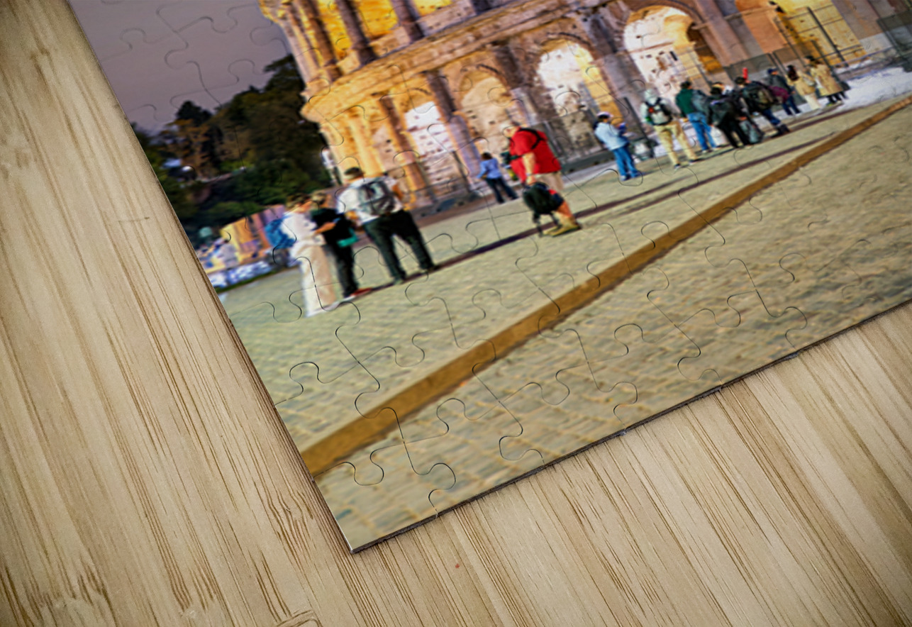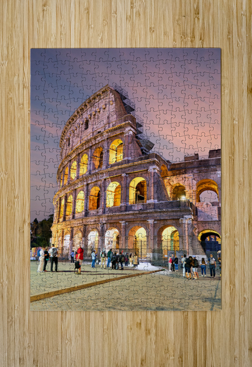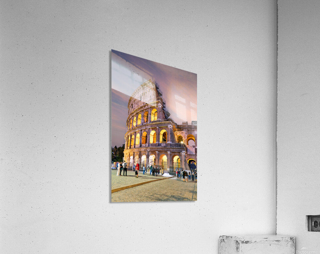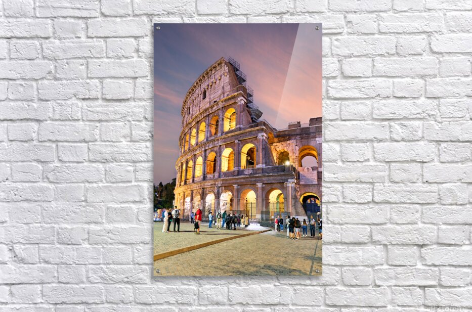 "Exploring the Colosseum at dusk in Rome Italy" in a framed print.