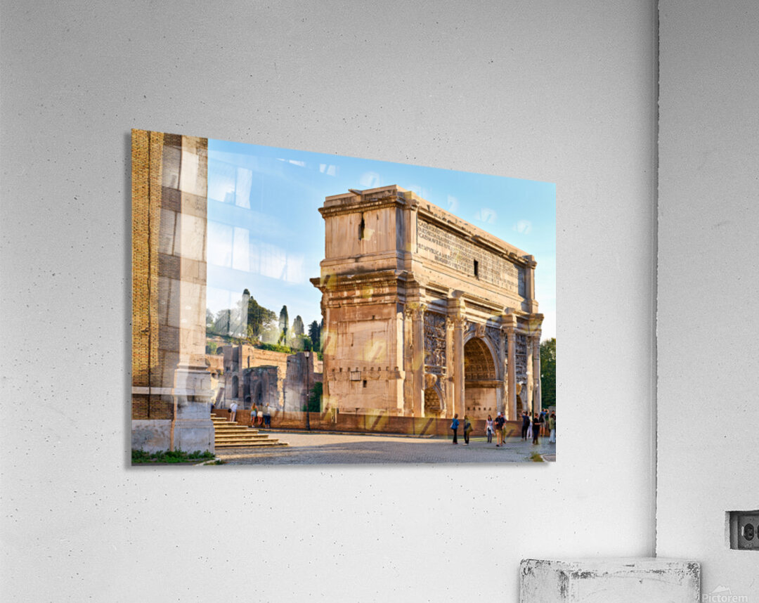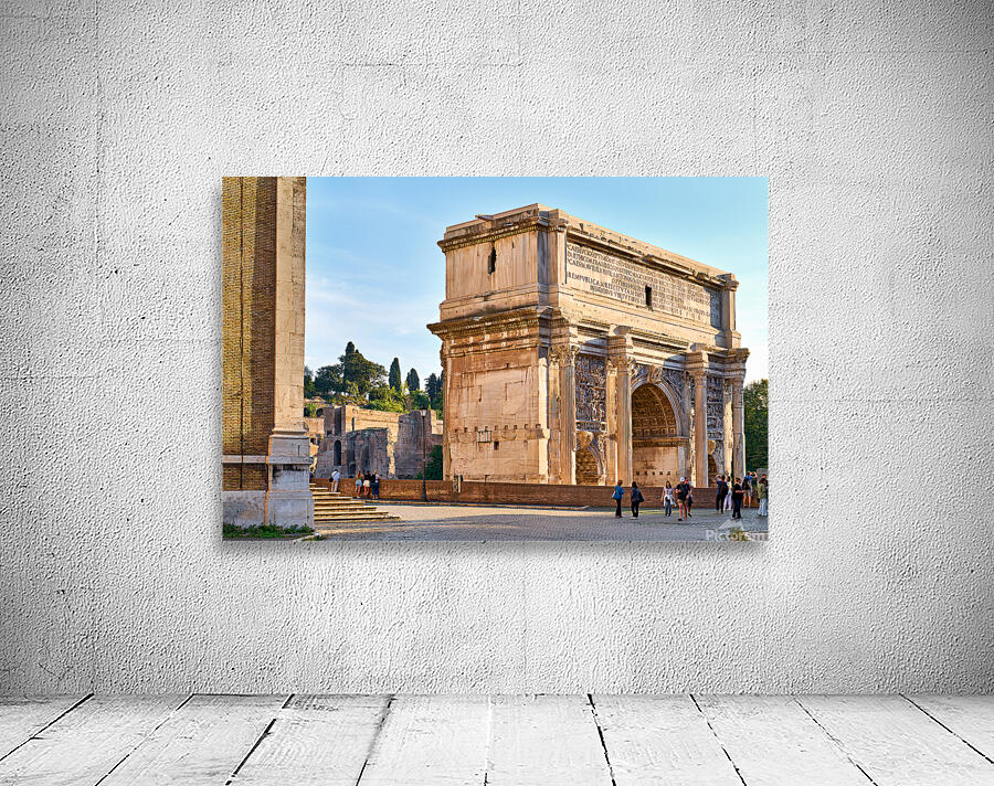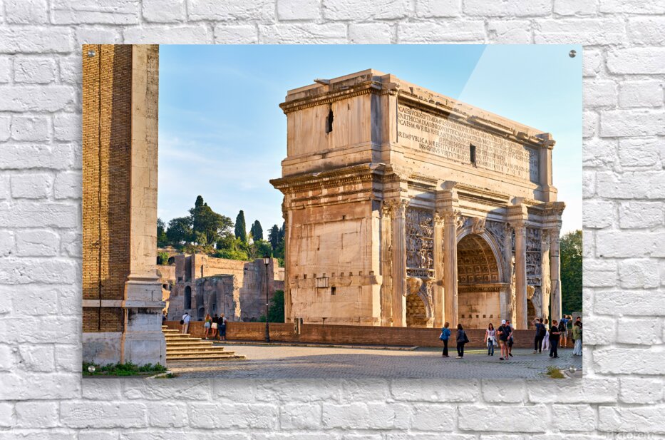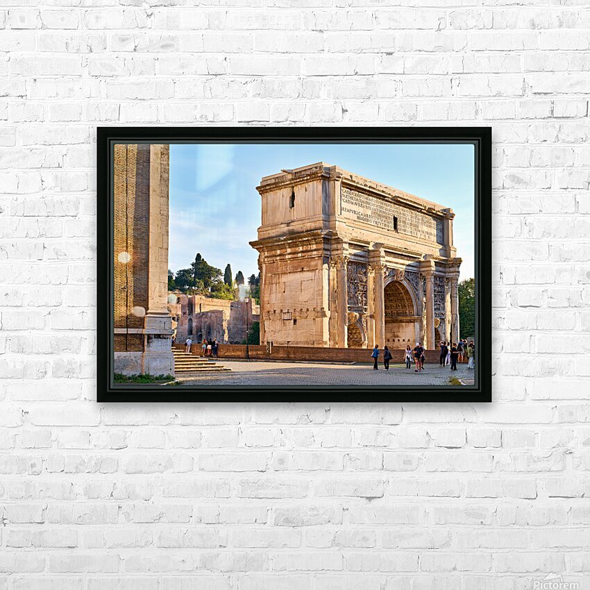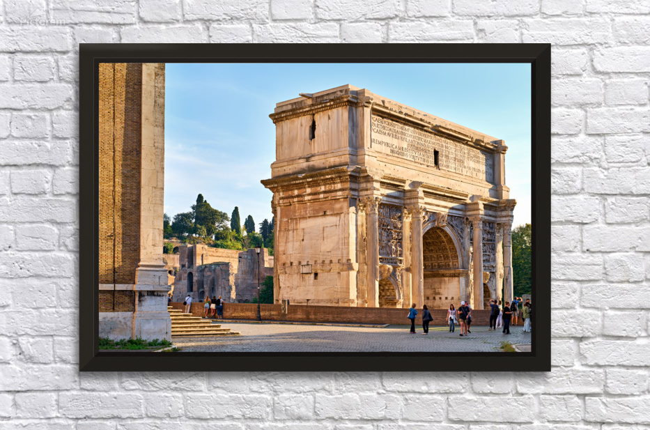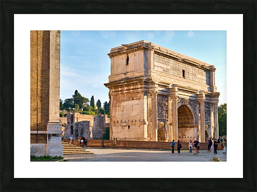"Exploring the arch of septimus severus in rome" in a framed print.