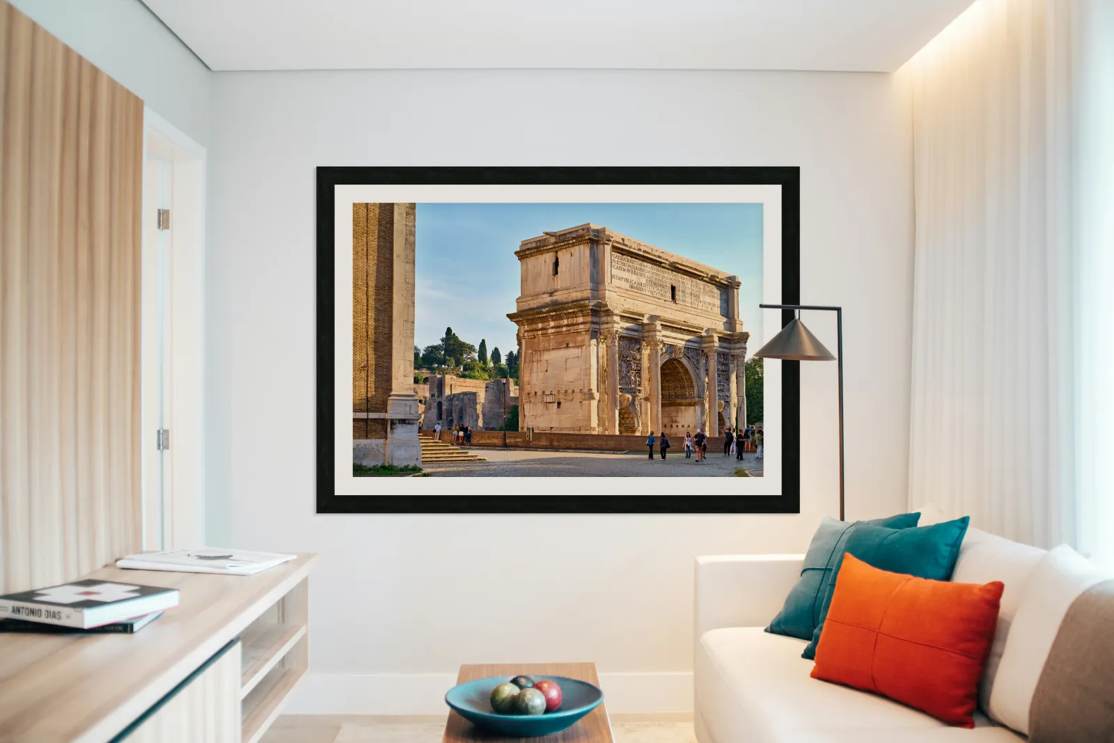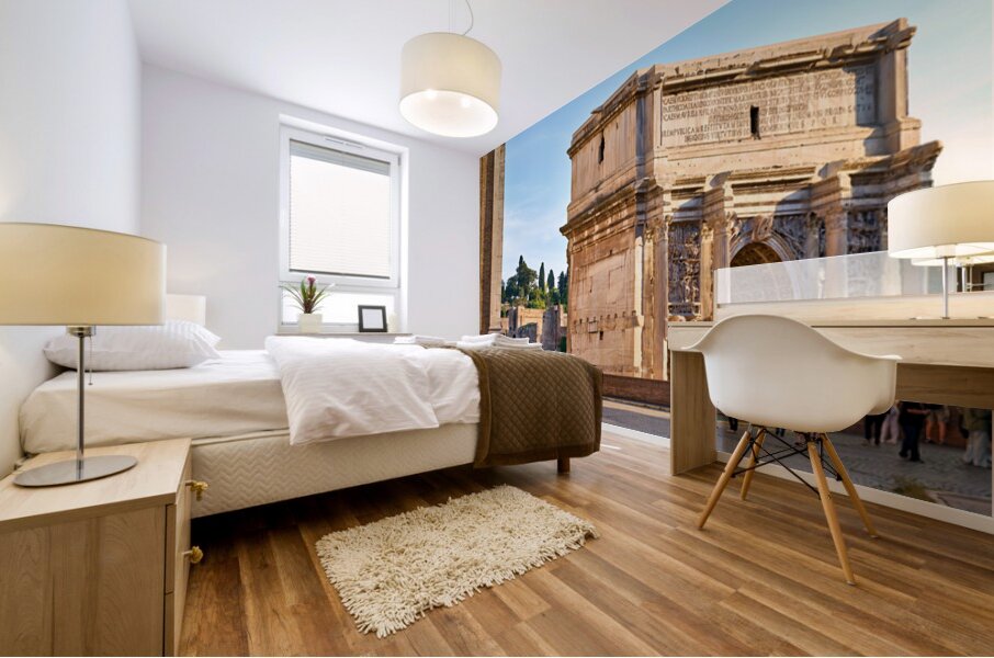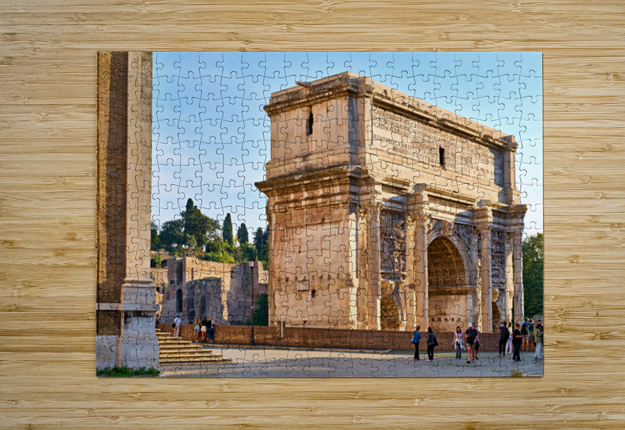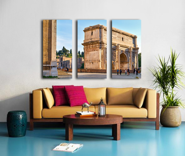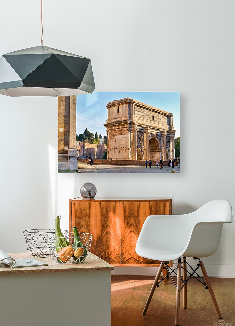 "Exploring the arch of septimus severus in rome" in a framed print.