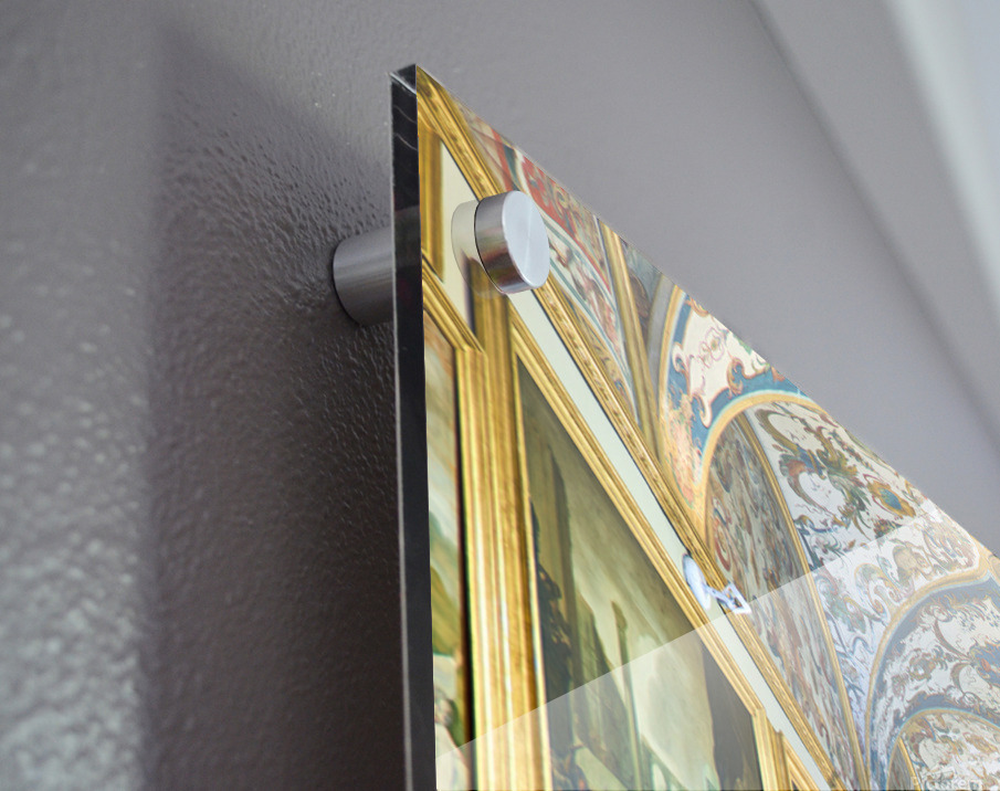 Printed to the edge - Ready to hang - provided with 4 premium polished aluminum stand off ( wall screws and mounting hardware provided )