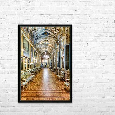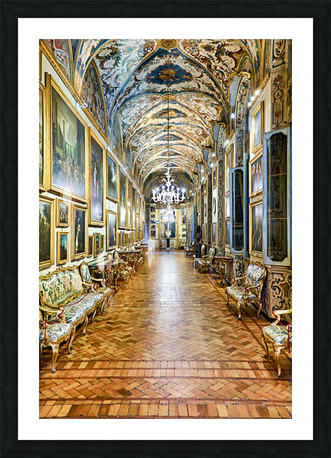 "Art collection in Doria Pamphilj Gallery in Rome Italy" in a framed print.