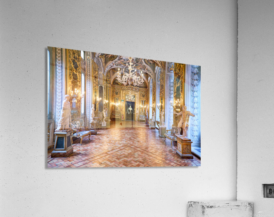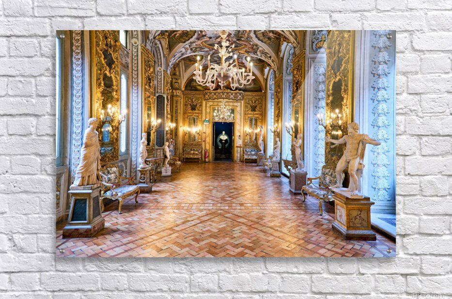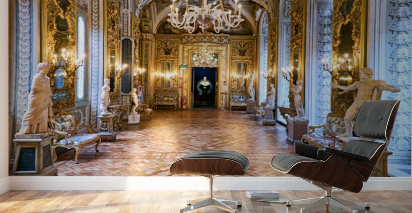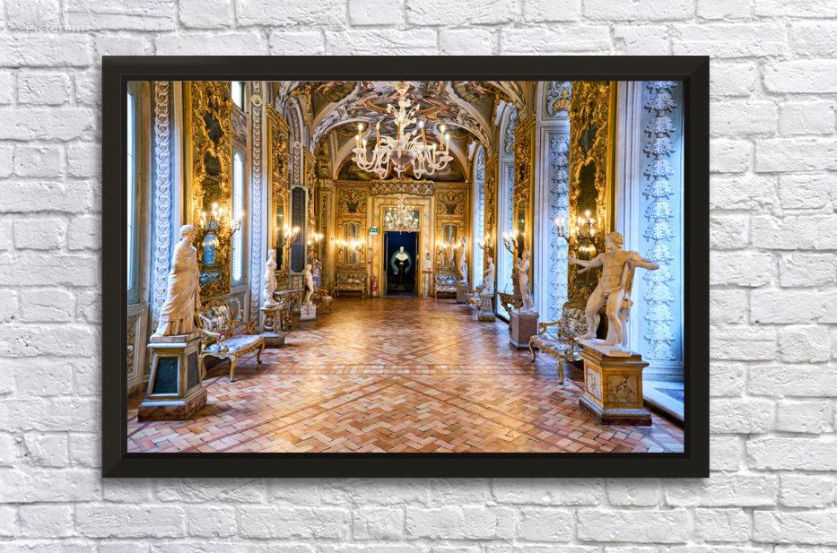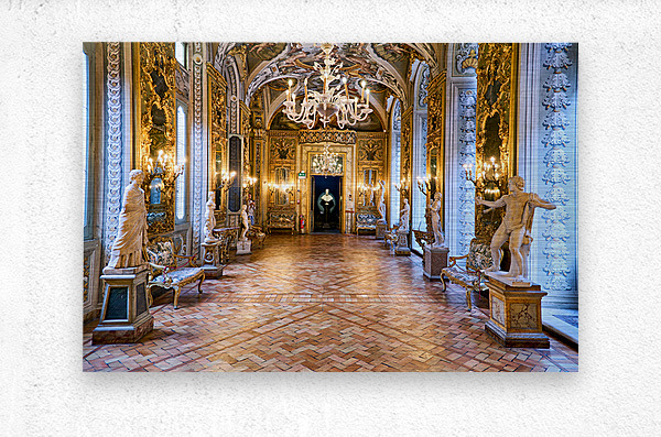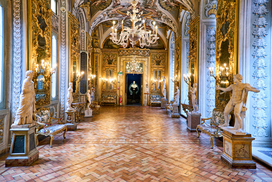 Visitors explore the Doria Pamphilj Gallery in Rome viewing art and statues in the mirrors gallery and enjoying the historical decor.