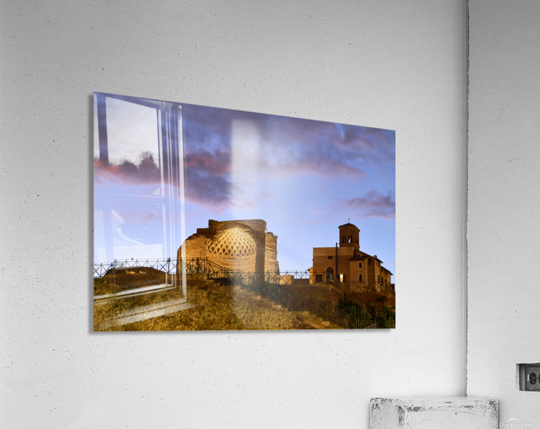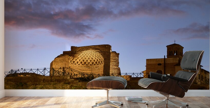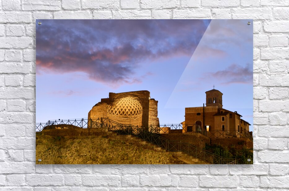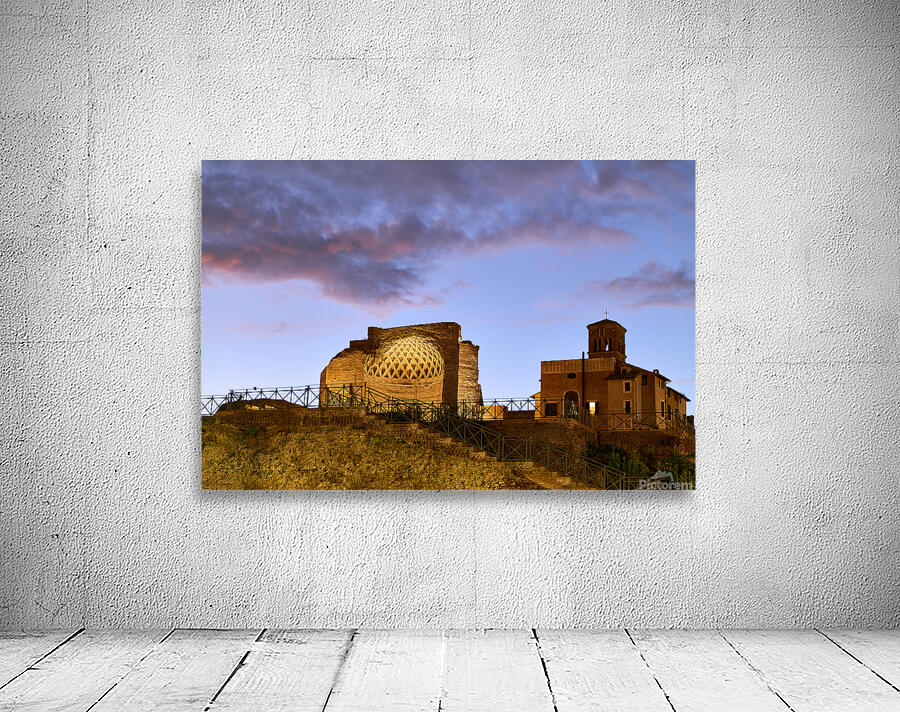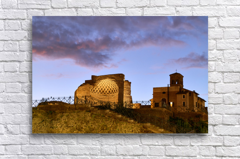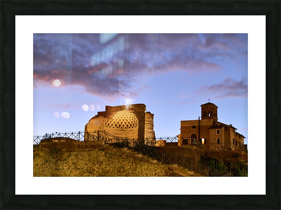 "Visit to Temple of Venus and Roma at dusk in Rome Lazio Italy" in a framed print.