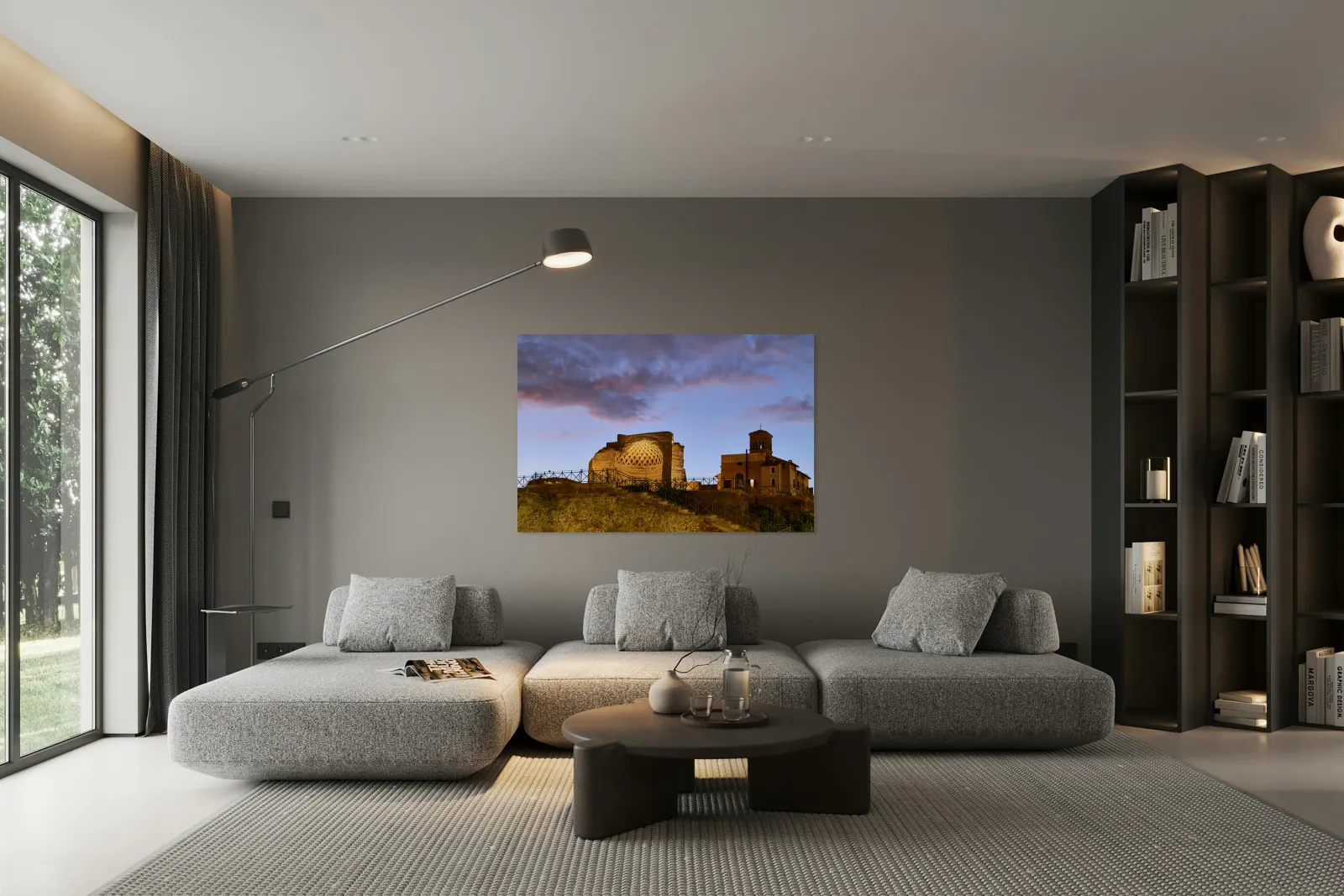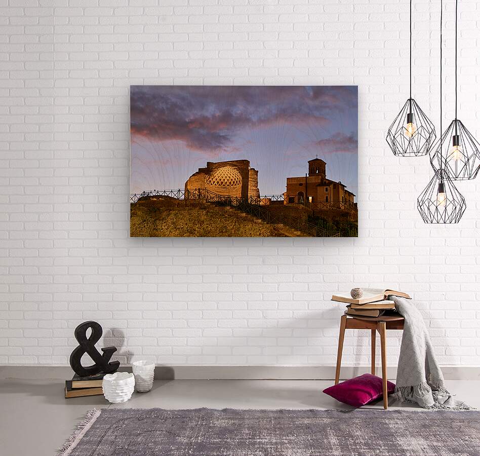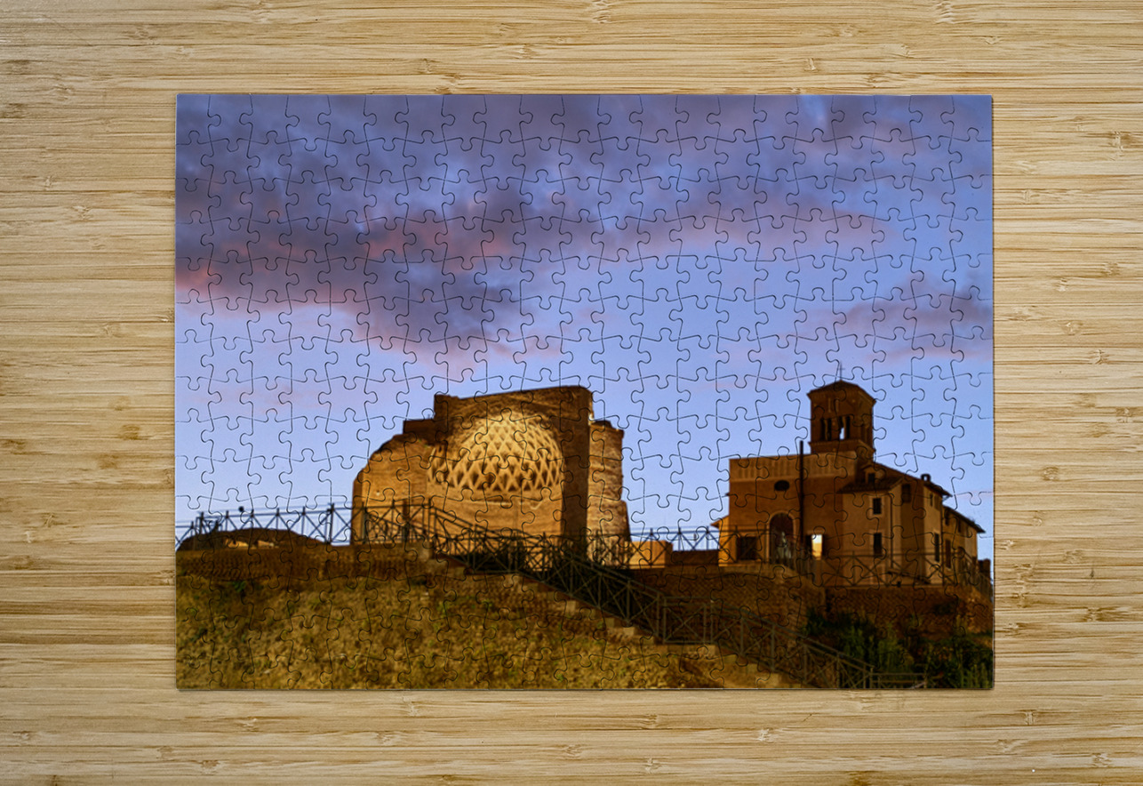 "Visit to Temple of Venus and Roma at dusk in Rome Lazio Italy" in a framed print.