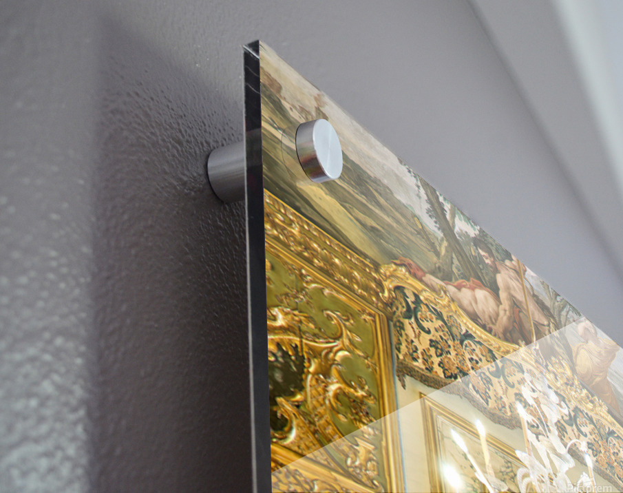 Printed to the edge - Ready to hang - provided with 4 premium polished aluminum stand off ( wall screws and mounting hardware provided )
