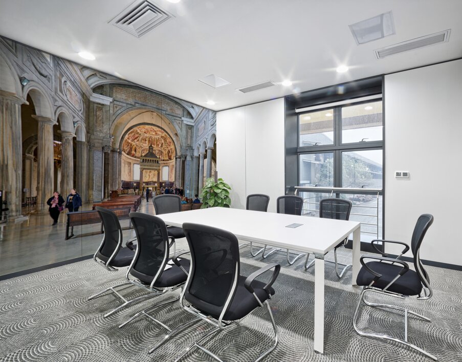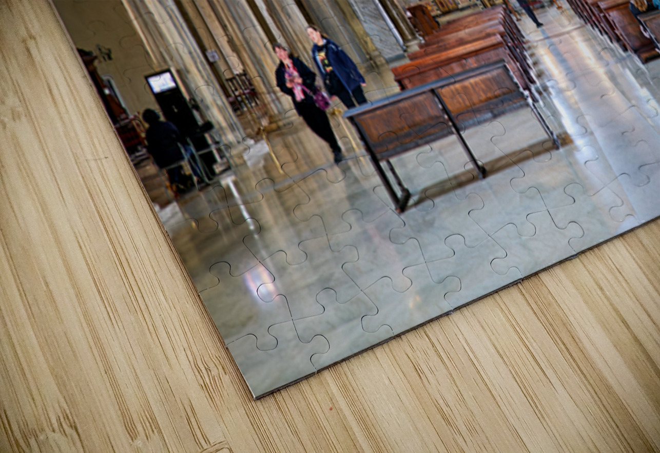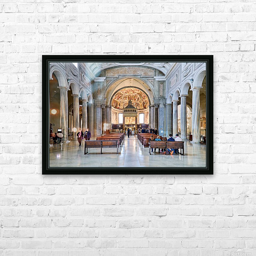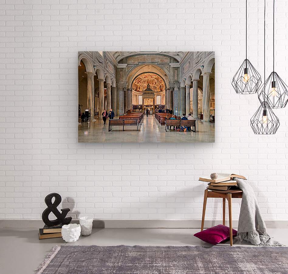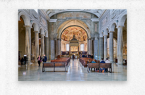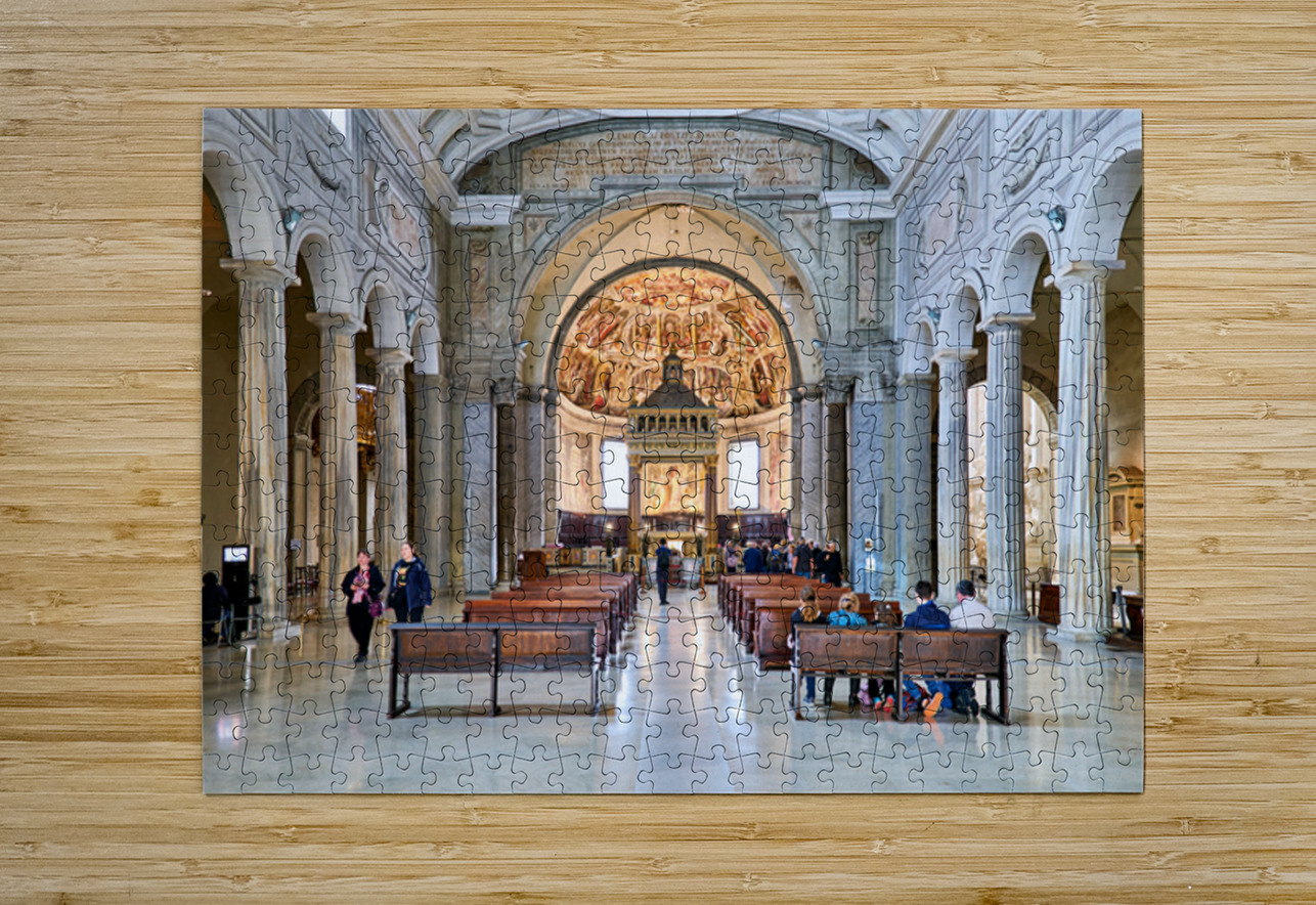 People explore San Pietro in Vincoli church in Rome Italy. Visitors admire the architecture and artwork inside the basilica during daytime.