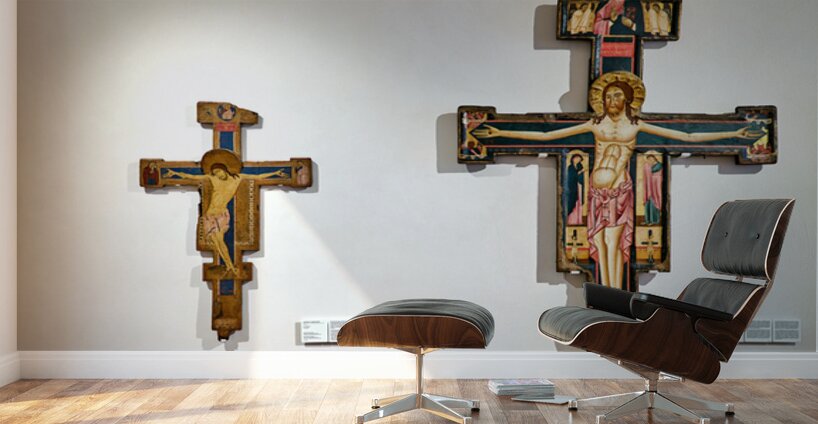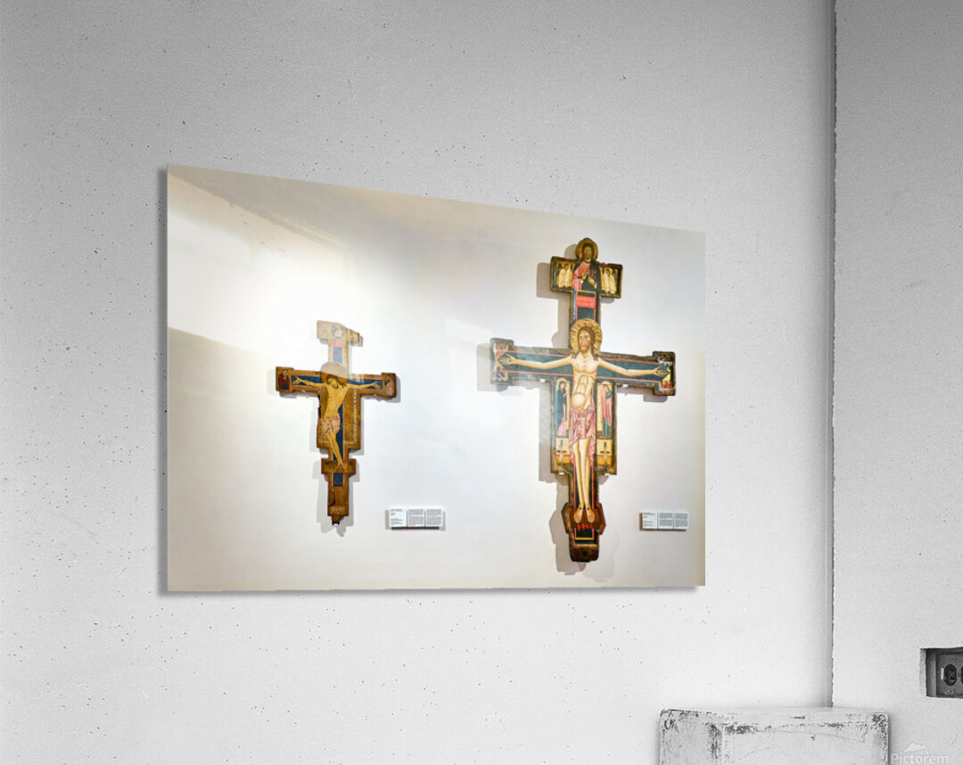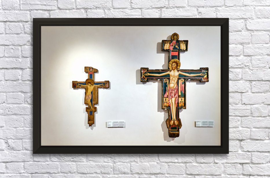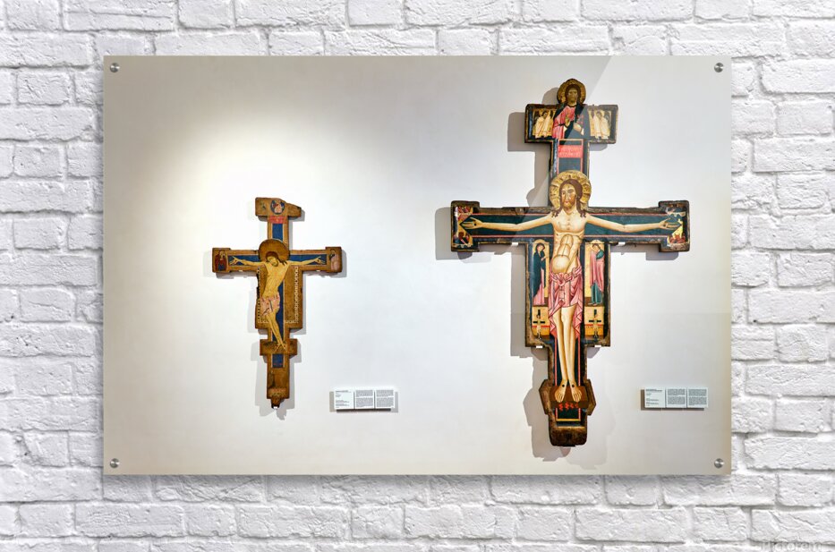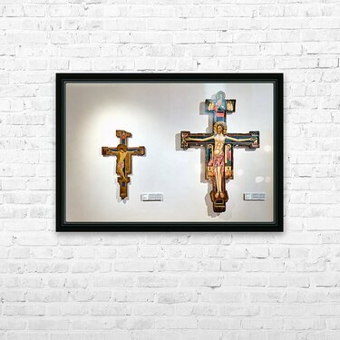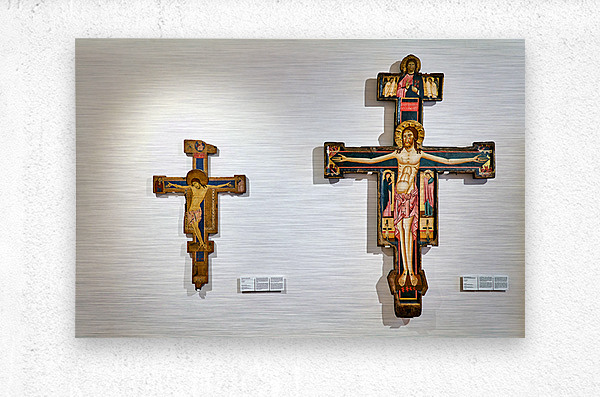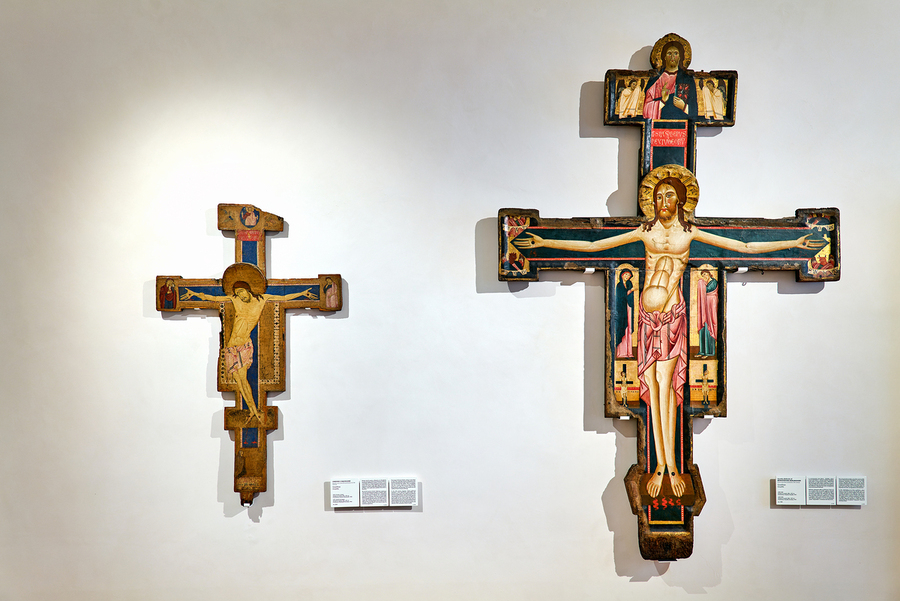 Medieval crucifixes by Berlinghieri and Machilone displayed at Galleria Nazionale dArte Antica in Rome showcasing historical religious art.