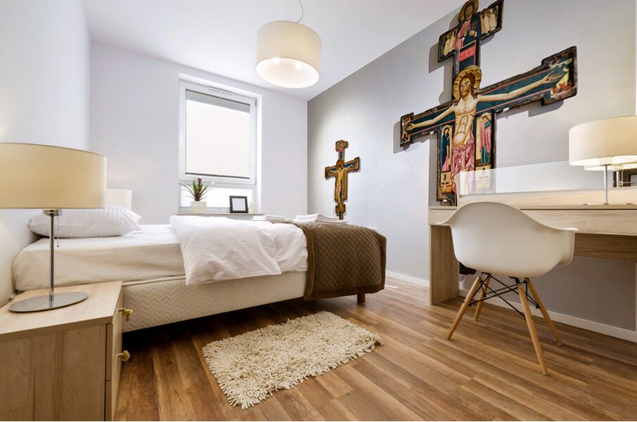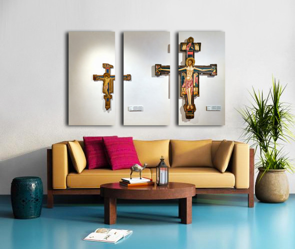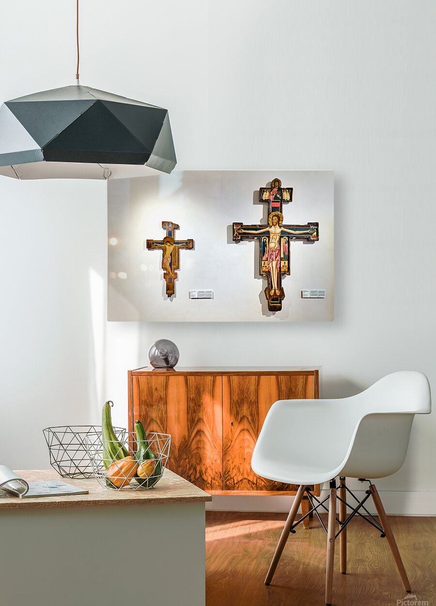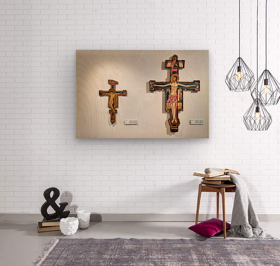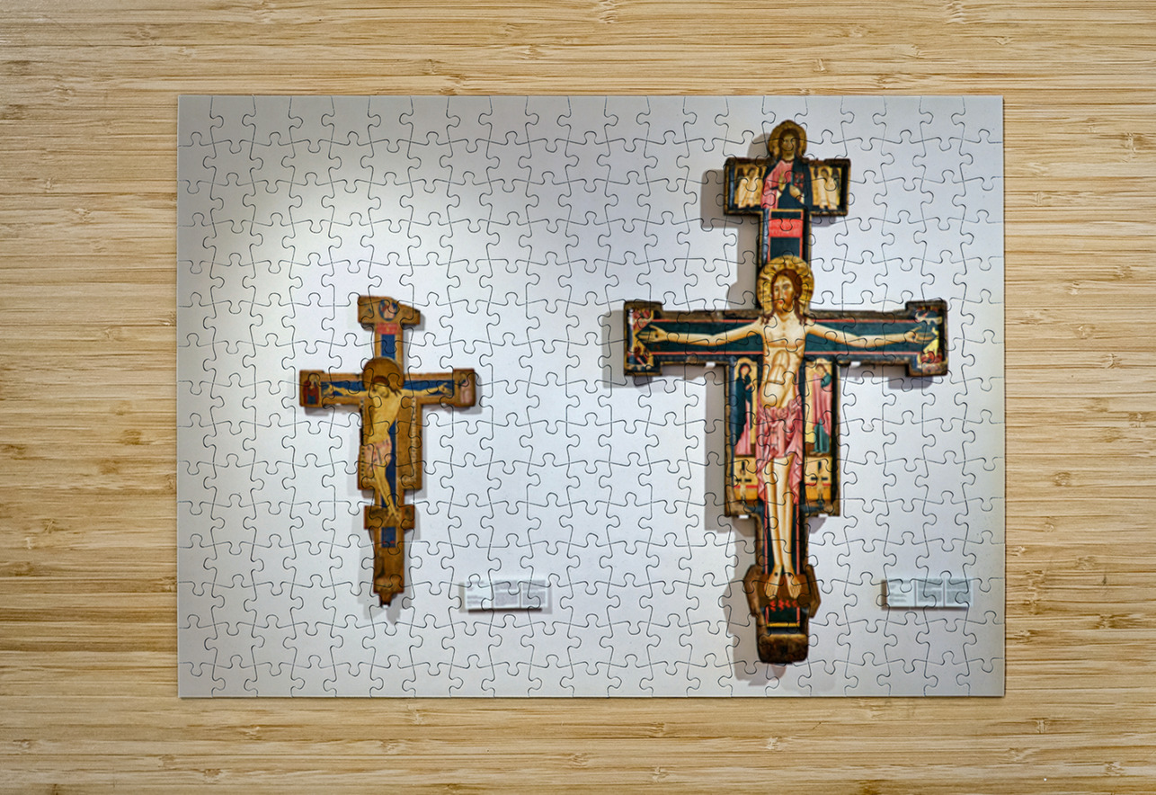 Medieval crucifixes by Berlinghieri and Machilone displayed at Galleria Nazionale dArte Antica in Rome showcasing historical religious art.