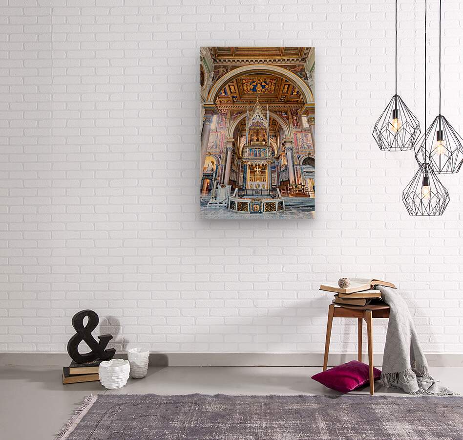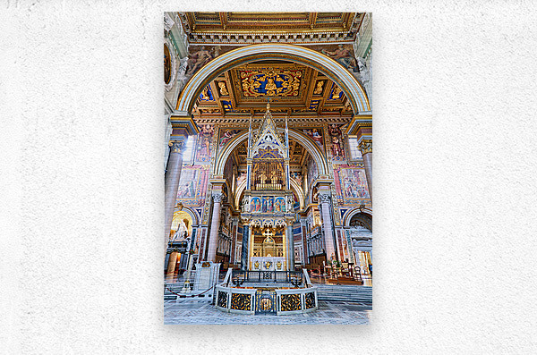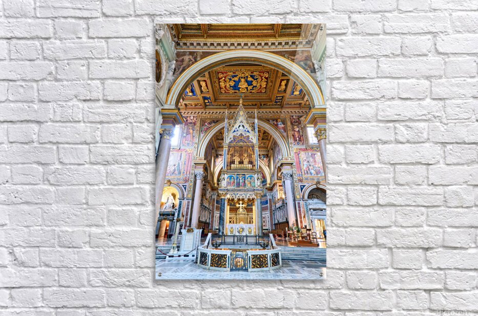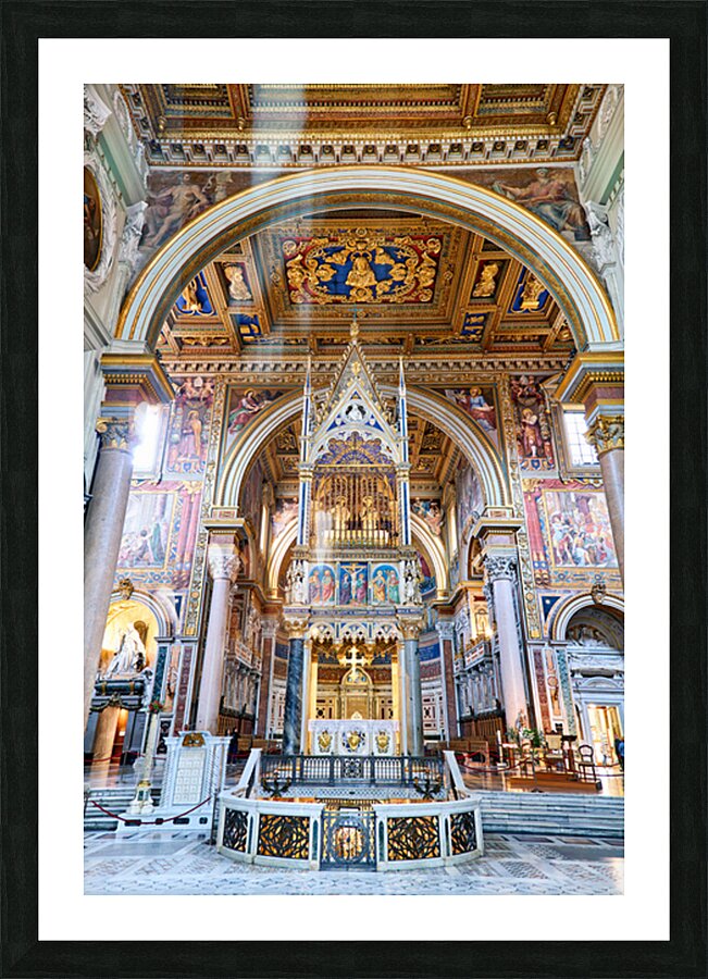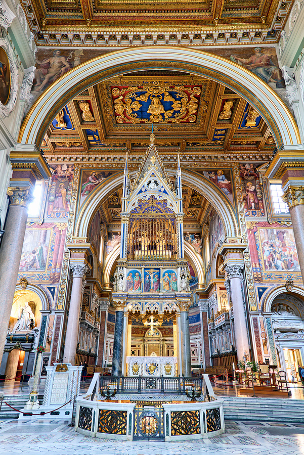 The altar and detailed artwork inside the Lateran Cathedral in Rome. The space highlights its architectural features and religious atmosphere.