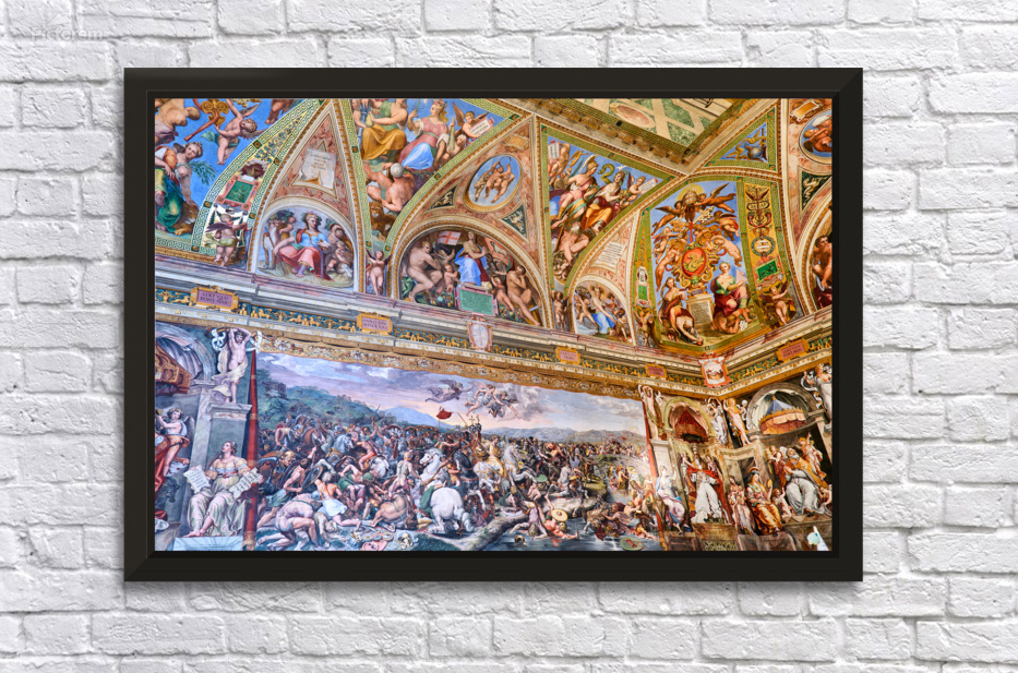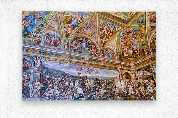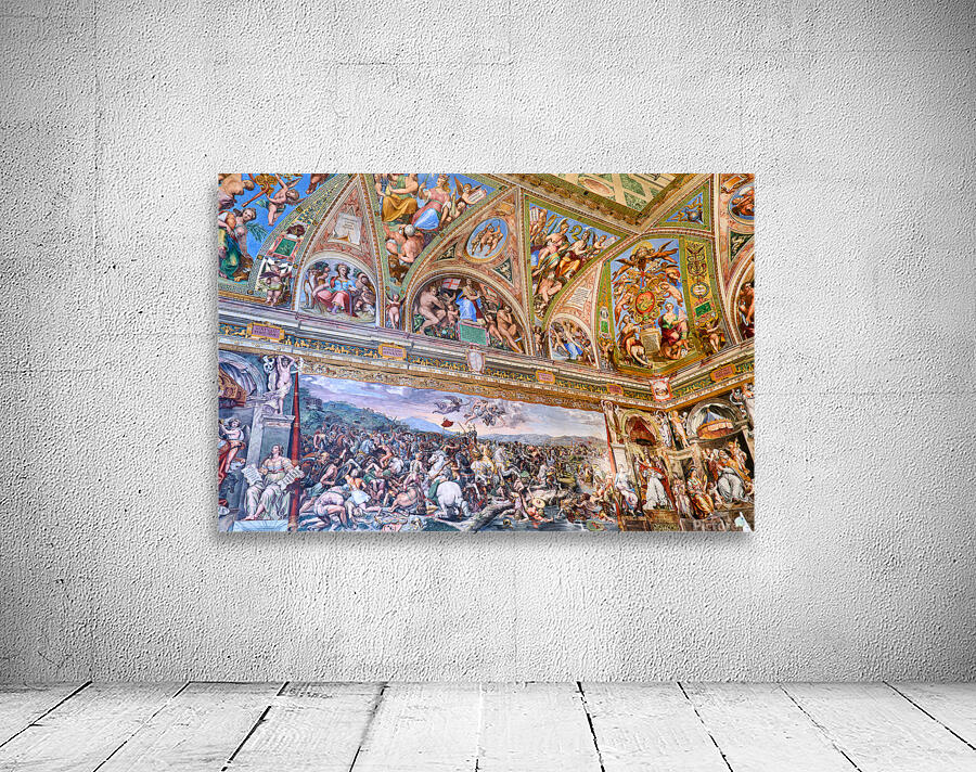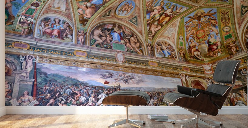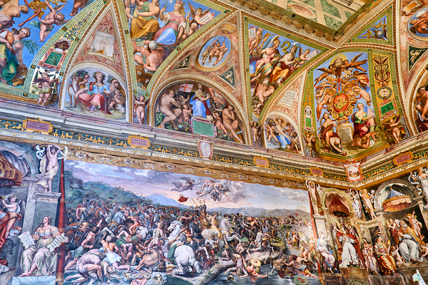 Visitors view detailed frescoes in the Raphael rooms at the Vatican Museums in Vatican City showcasing art from a historic period.