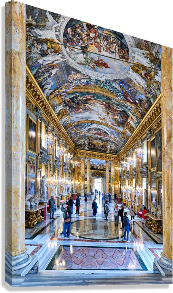Get this artwork "Visitors explore the Great Hall of Colonna Art Gallery in Rome" in a framed print.