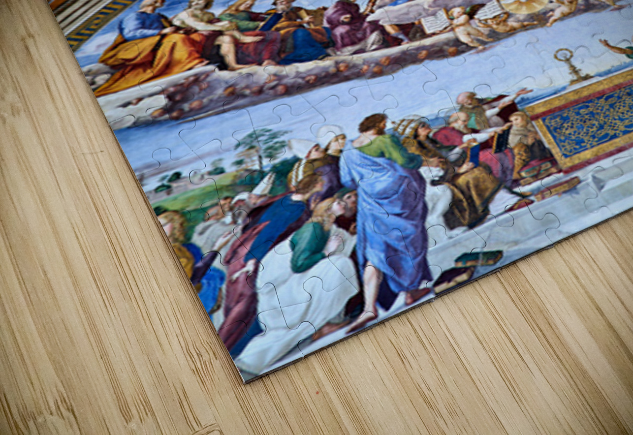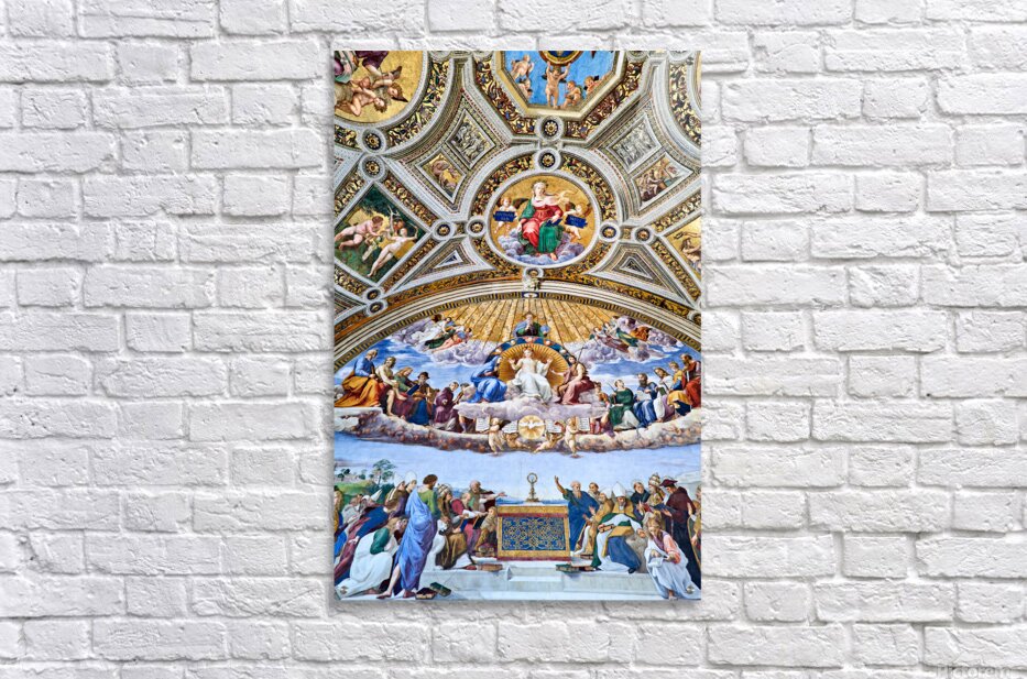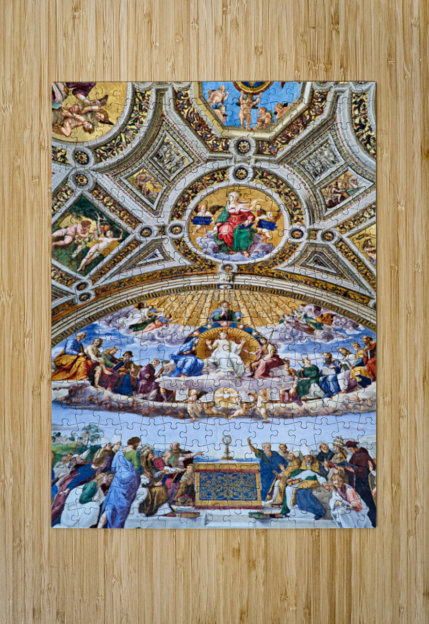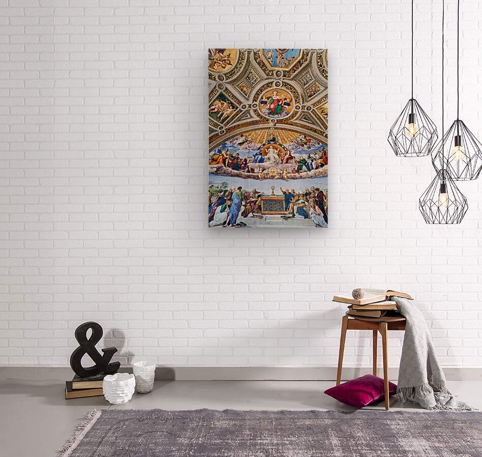 Visitors admire the famous frescoes on the ceilings in the Raphael rooms at the Vatican Museums in Vatican City Rome during a cultural tour.
