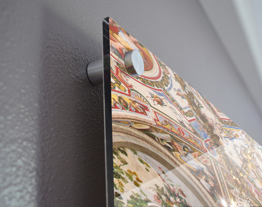 Printed to the edge - Ready to hang - provided with 4 premium polished aluminum stand off ( wall screws and mounting hardware provided )