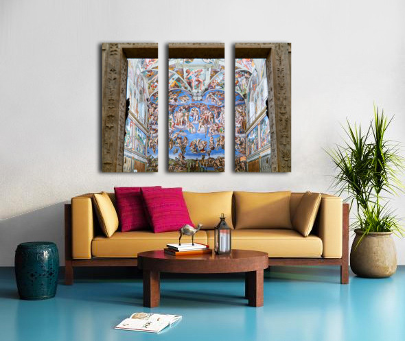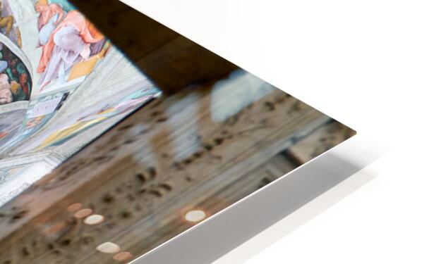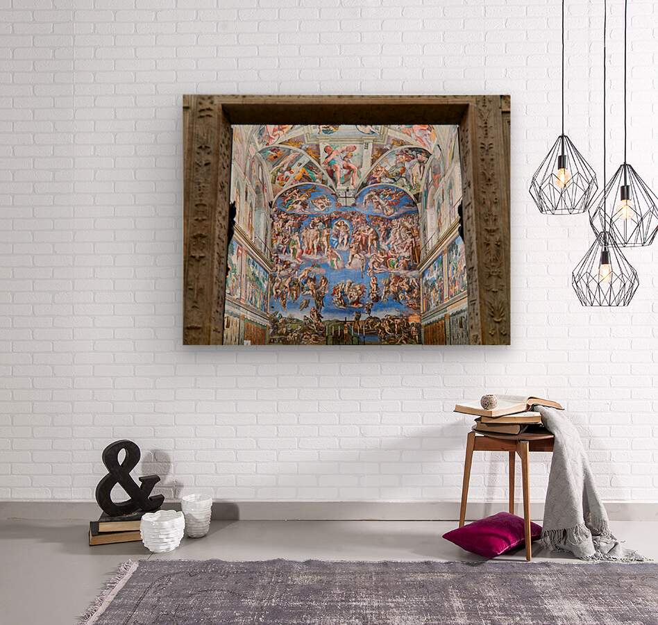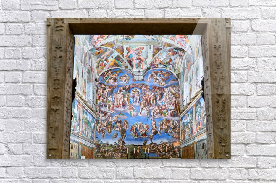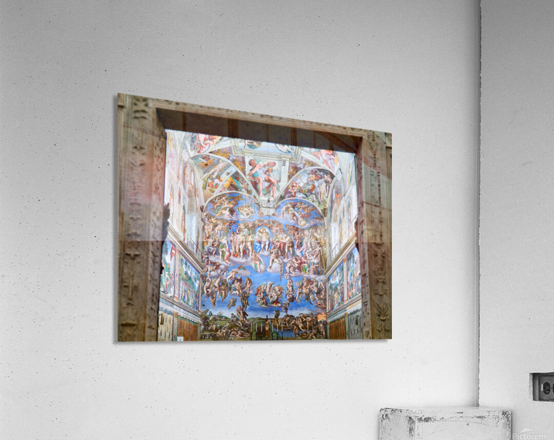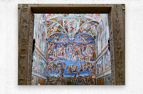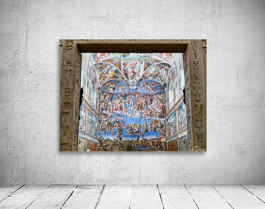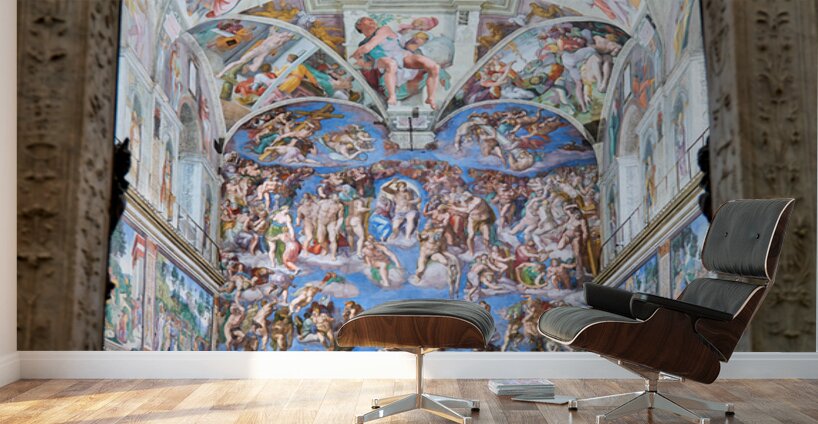 People explore the Sistine Chapel in Vatican City. They admire Michelangelos work on The Last Judgement and the detailed artwork on the walls.
