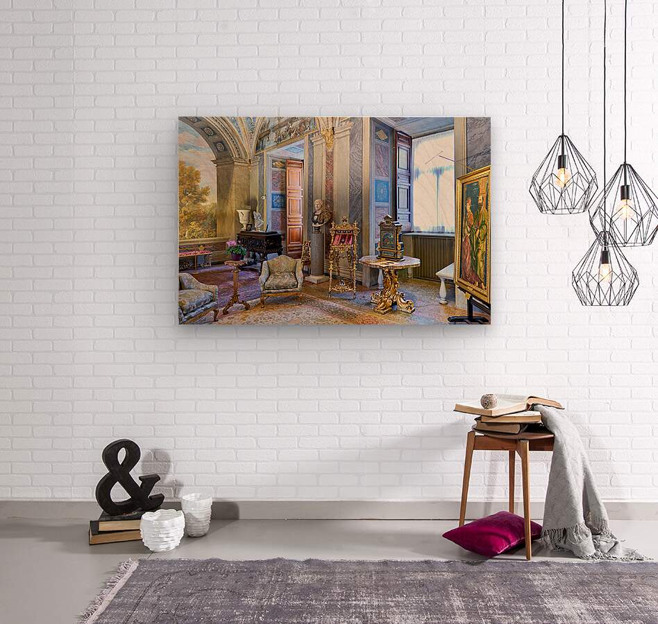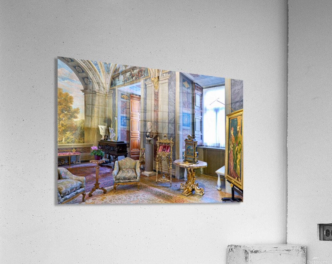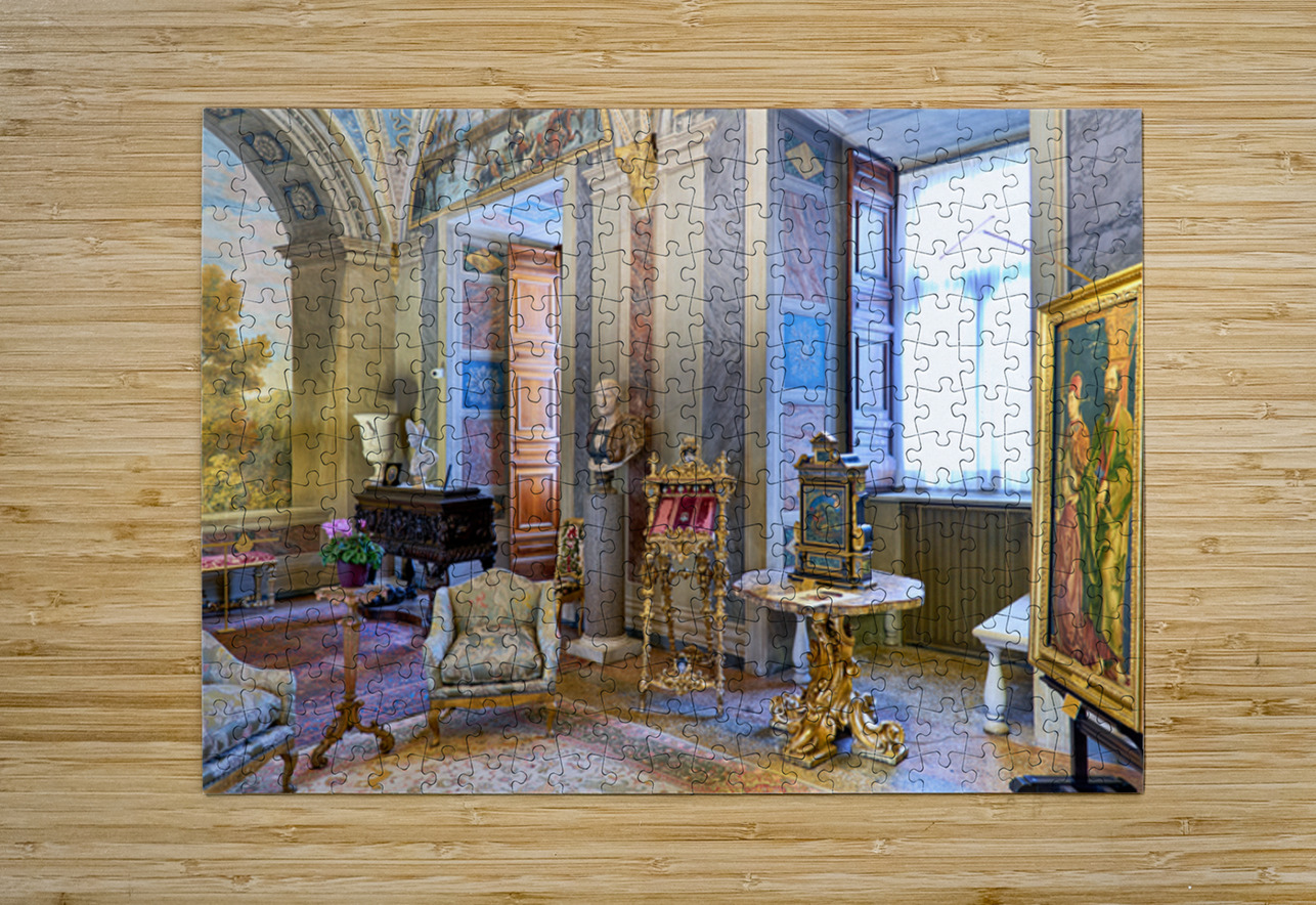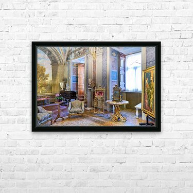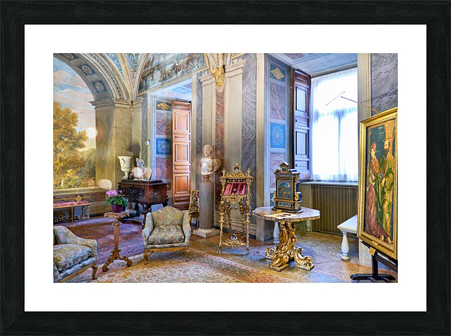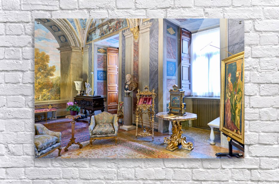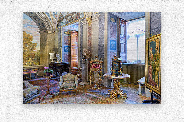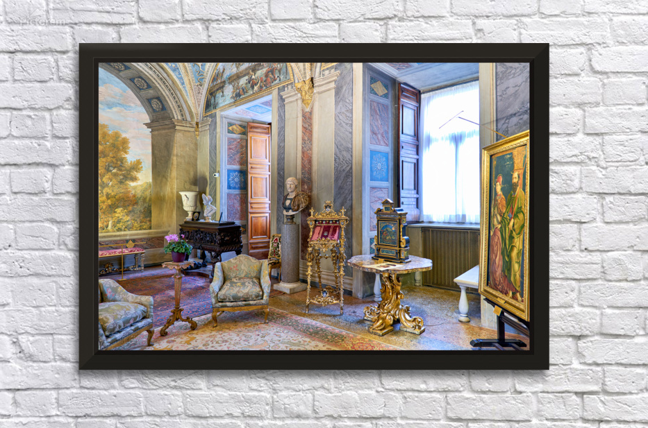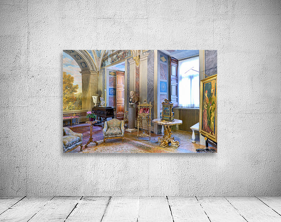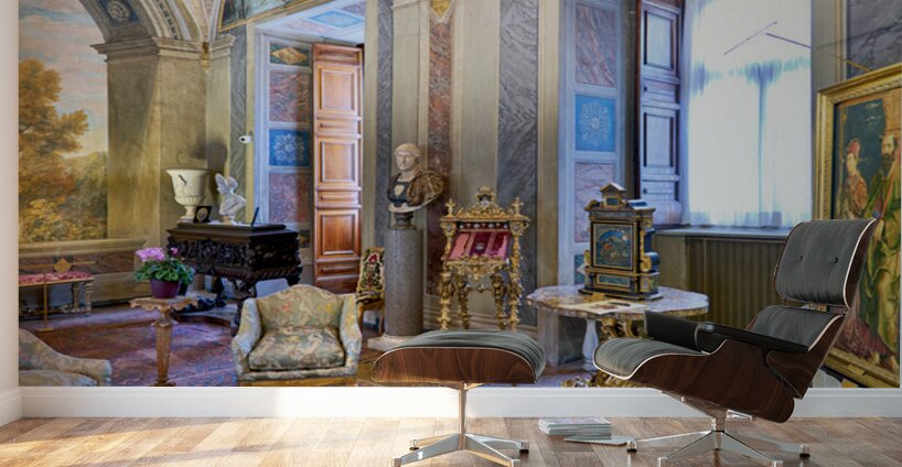 Visitors enjoy the displays in the Princess Isabelle Apartment at the Colonna Art Gallery in Rome Lazio Italy. The room features art and decor.