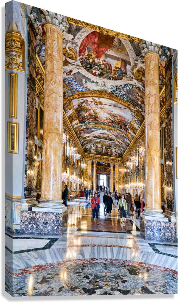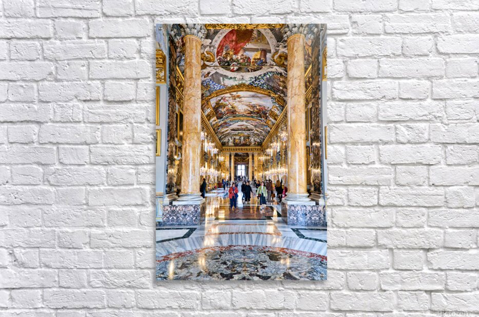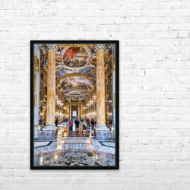 Get this artwork "Visitors explore the Great Hall at Colonna Art Gallery in Rome" in a framed print.